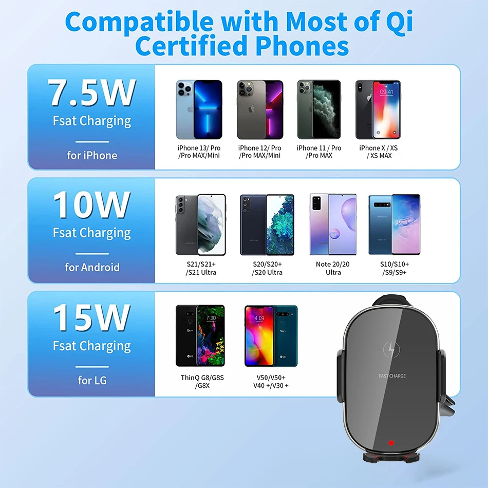 [Умный автоматический датчик] автоматическое открытие и Зажимная конструкция, которая может управляться одной рукой и сделать все проще и безопаснее. Просто поместите телефон в держатель, зажимы закроются и обеспечат надежное удержание.