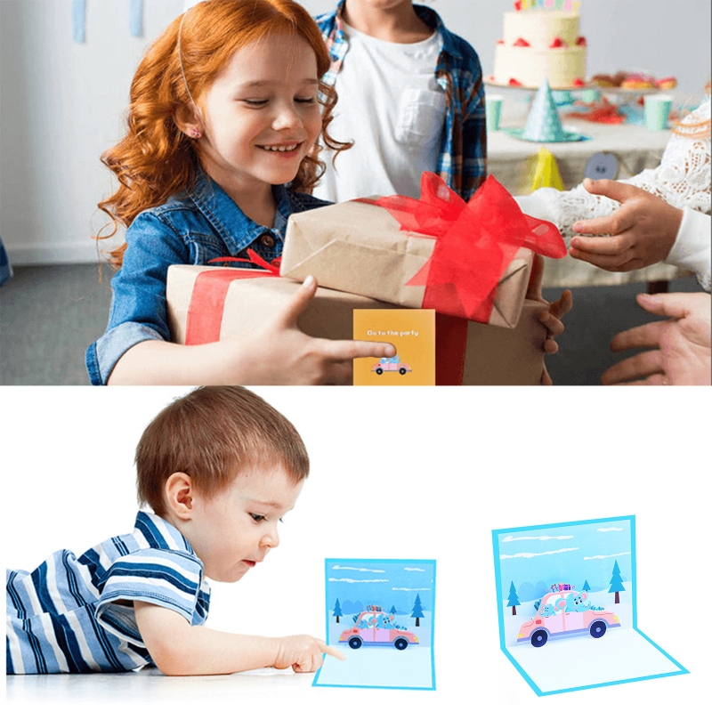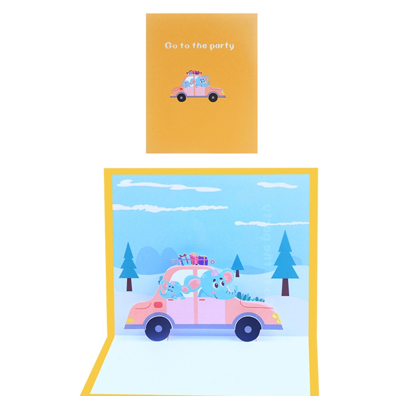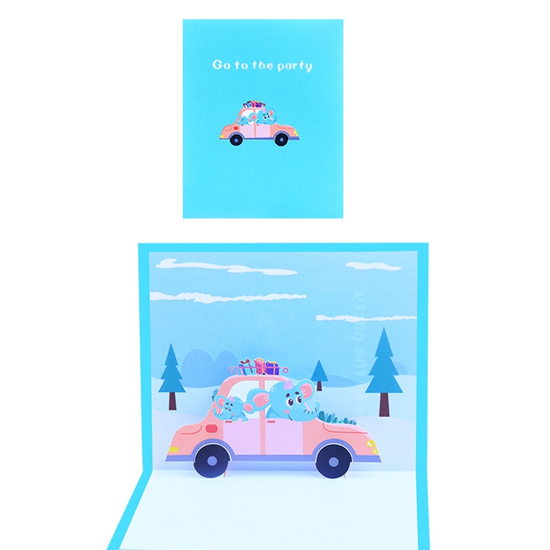Креативные 3D всплывающие открытки с мультяшным слоном, машинки ручной работы, поздравительные открытки для детей, мальчиков и девочек, приглашения на день рождения для малышей M6CE