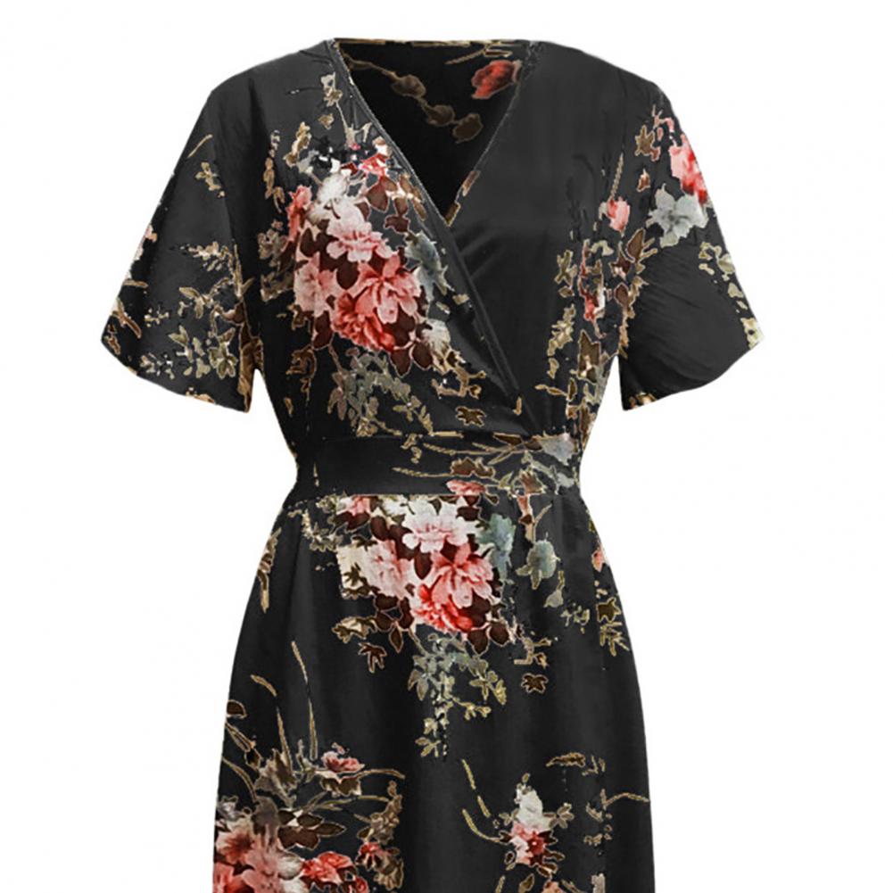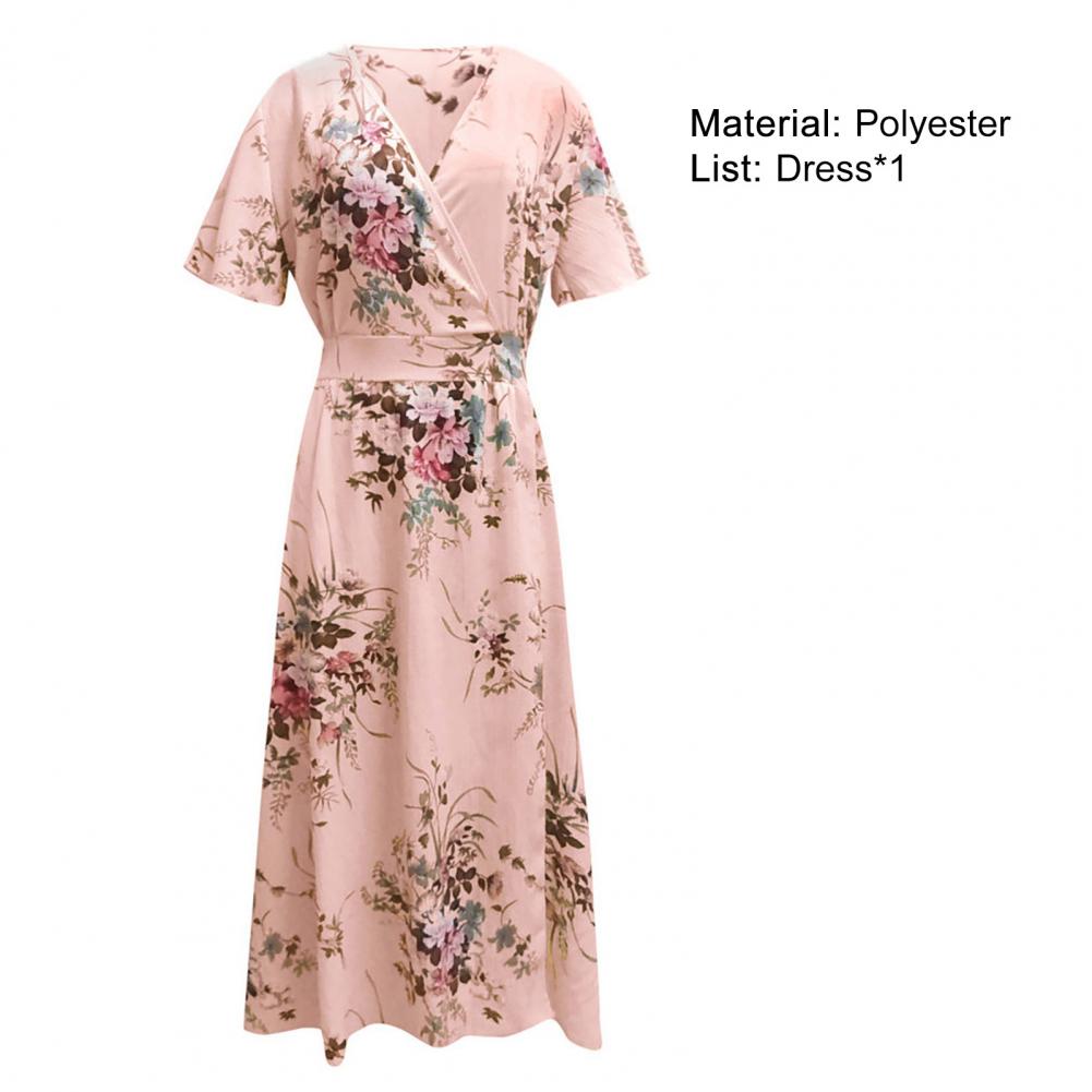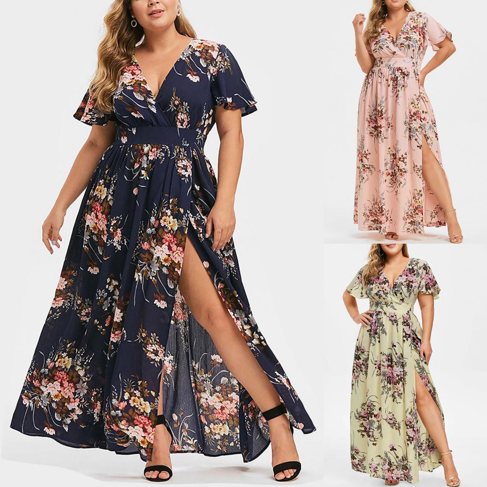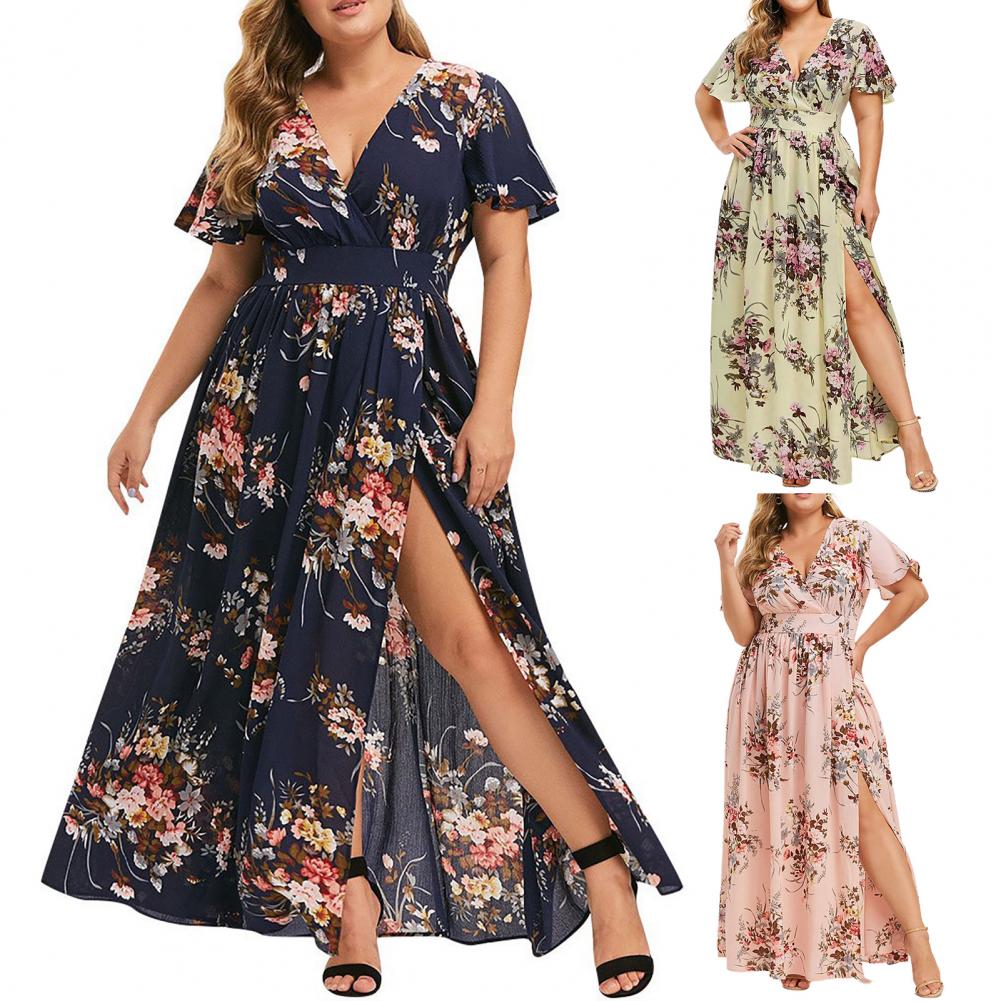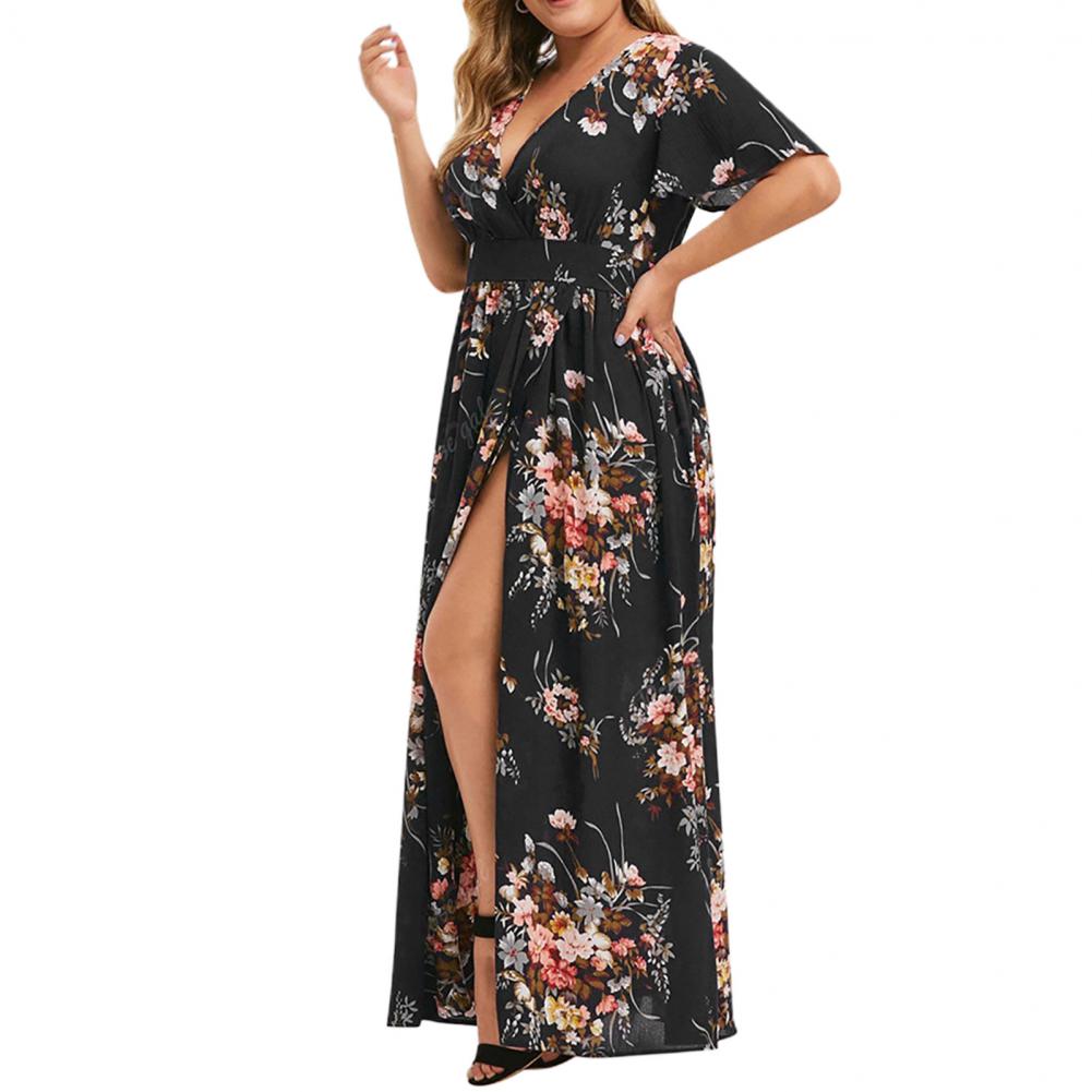 Женское длинное платье макси с коротким рукавом, цветочный принт, высокий разрез до талии, облегающее платье размера плюс, пляжная одежда