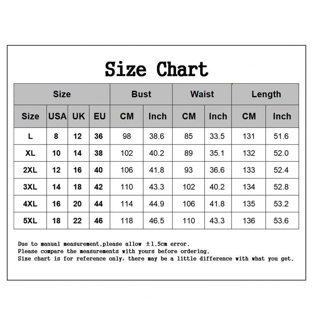 [Наш Размер XL] Обхват груди: 102 см/40,2 ", обхват талии: 89 см/35", Длина: 132 см/52 "(прибл.)