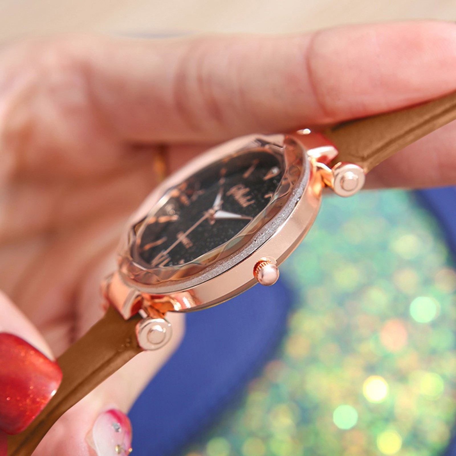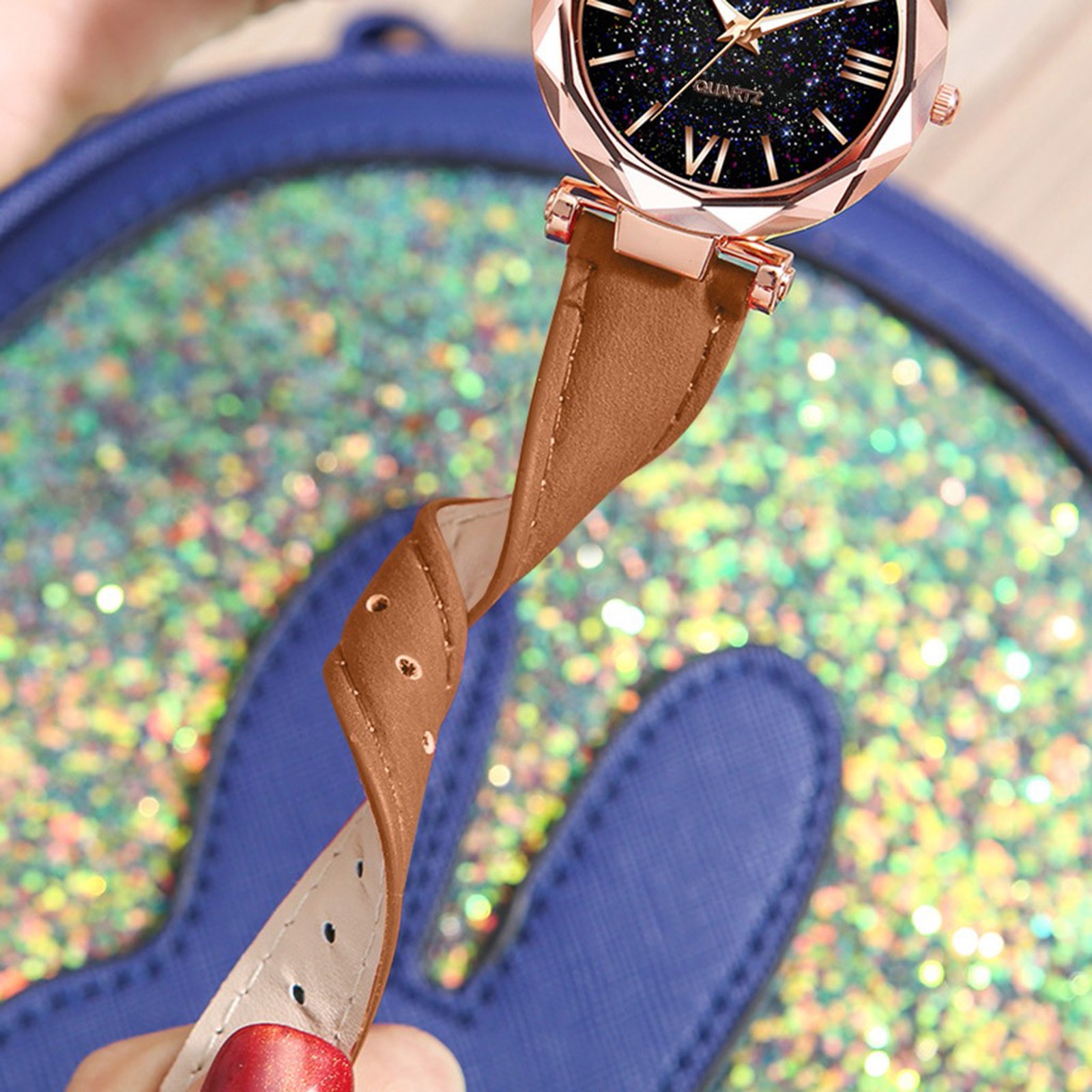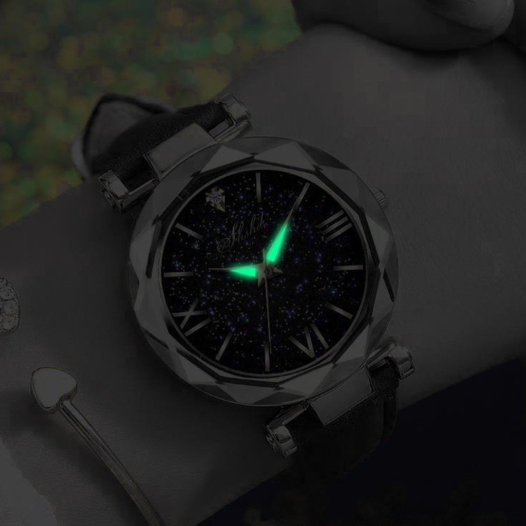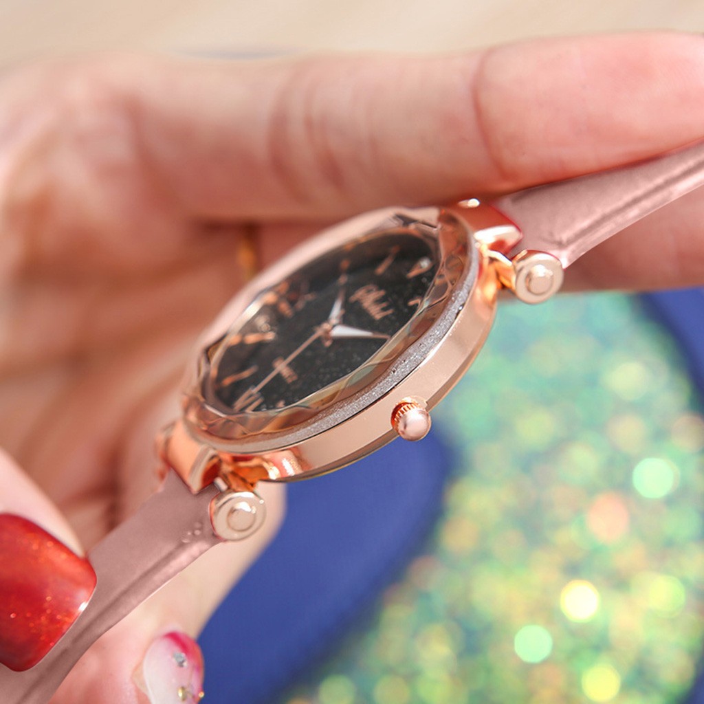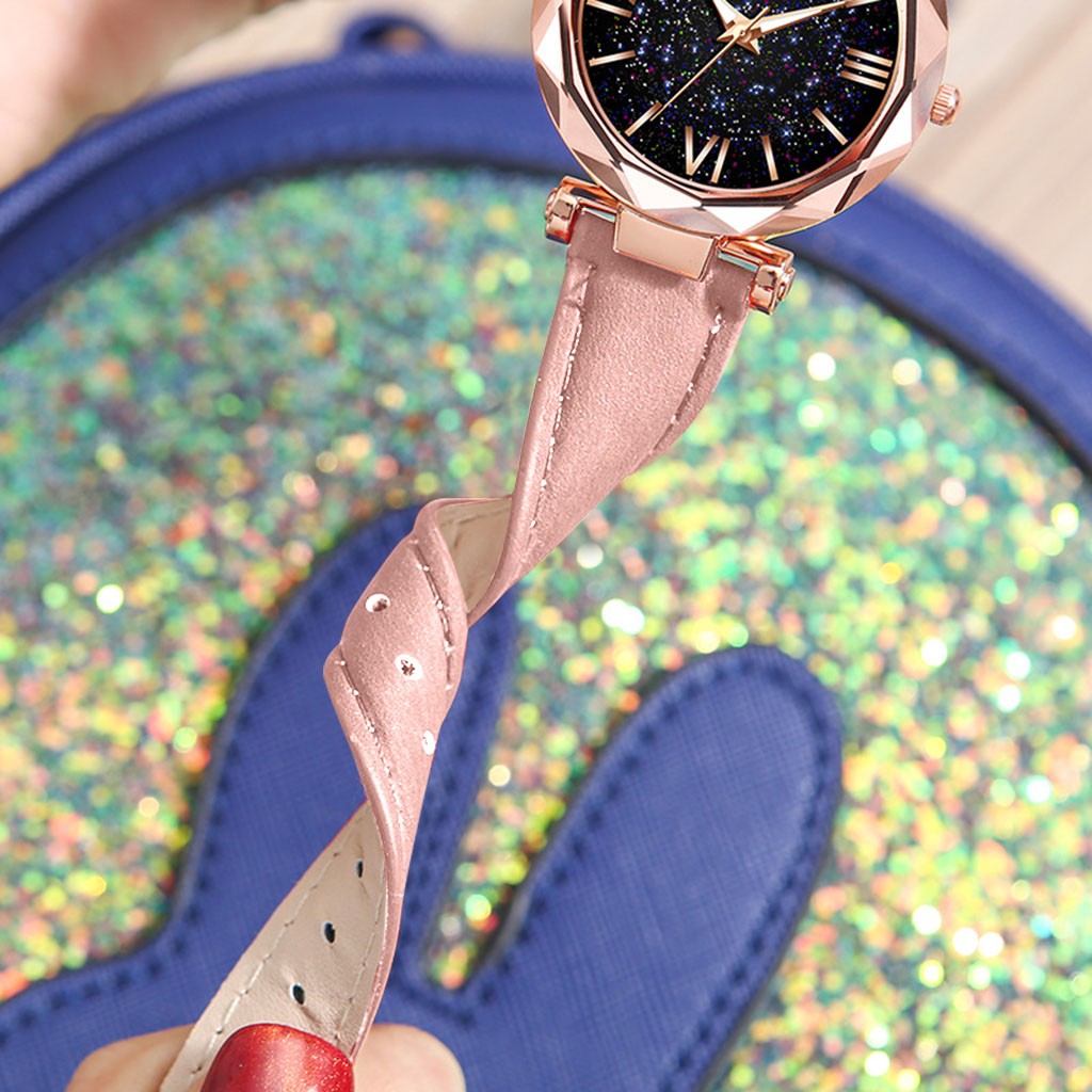 Женские часы с матовым ремешком со звездами и маленькими точками, часы в римском стиле