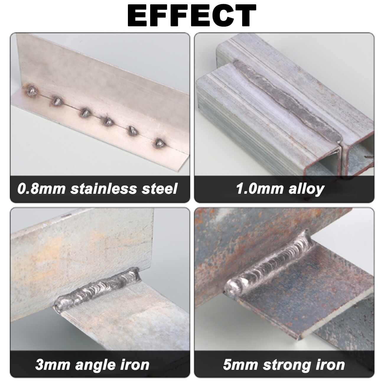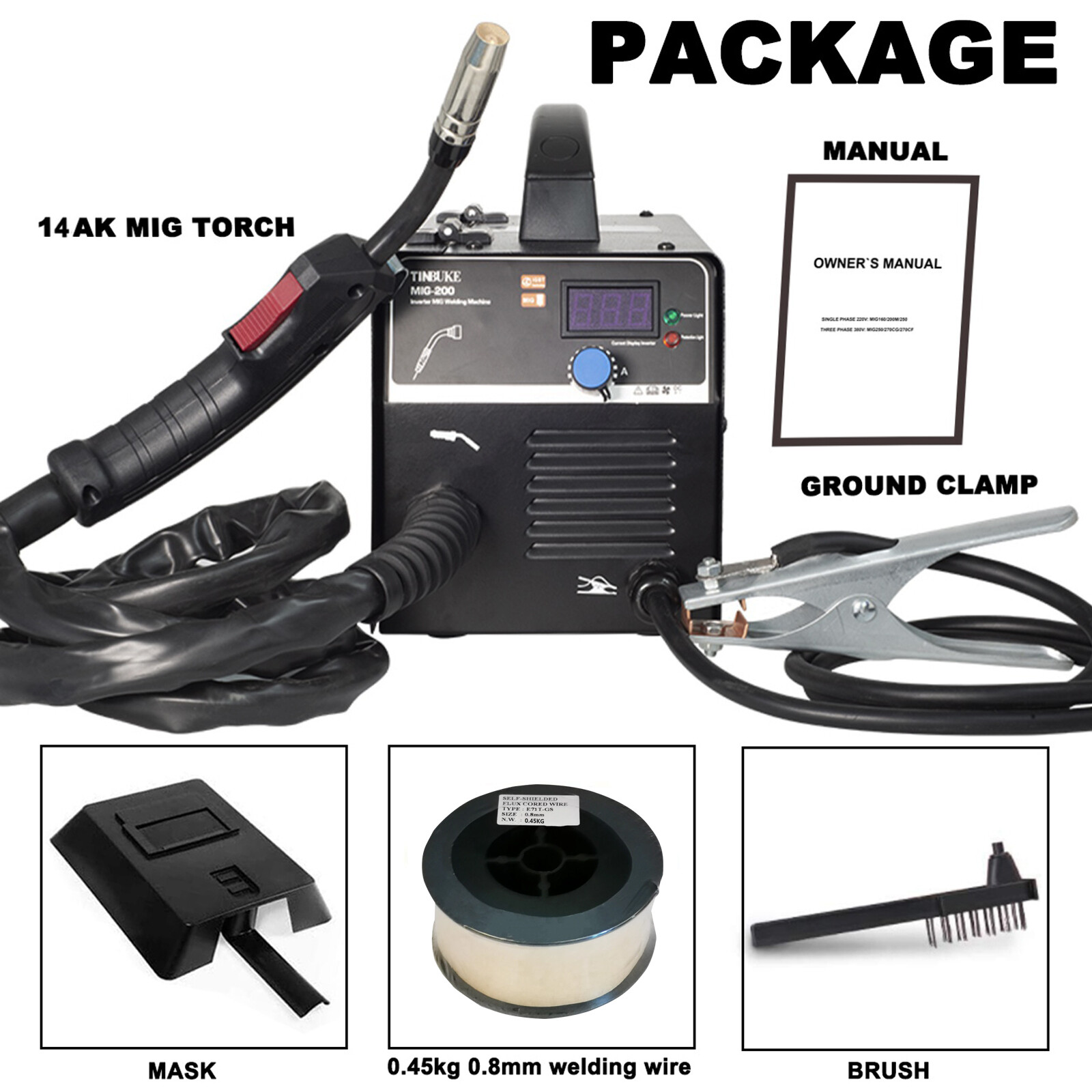 Сварка MIG: только безгазированная Сварка увеличивает удобство сварки, и простые шаги сварки могут достичь результатов сварки. Годный к употреблению диаметр провода 0,8/1,0, в зависимости от различных сварочных пробелы. (Свяжитесь с нами, если вам нужно видео для сборки проволочной катушки)