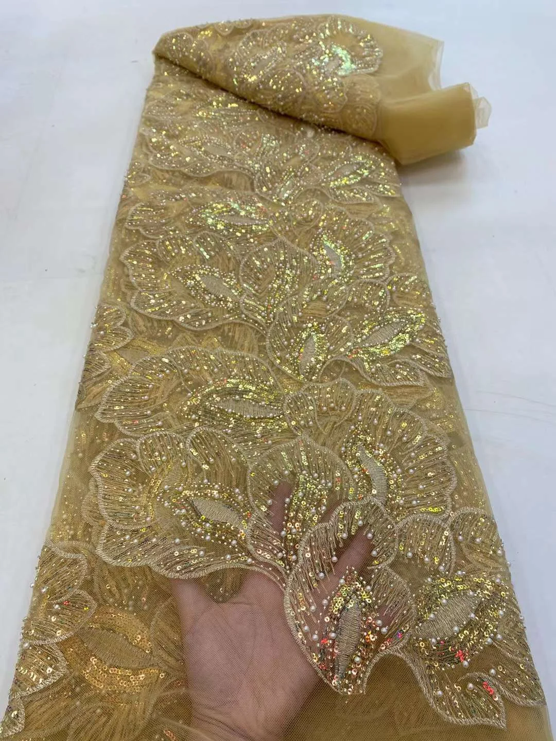 1. Вышитая сетчатая кружевная ткань.2. Ширина: 50-52 ".3. Длина: 5 ярдов за штуку.
