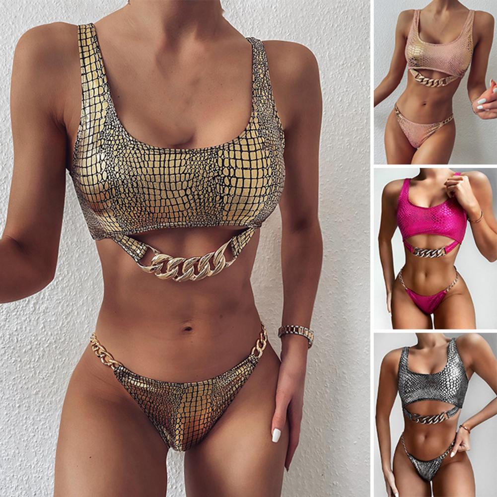 Змеиная кожа, сексуальное бикини, Женский Золотой купальник, Женский пуш-ап сексуальный комплект бикини, купальный костюм для женщин, бразильский maillot de bain femme