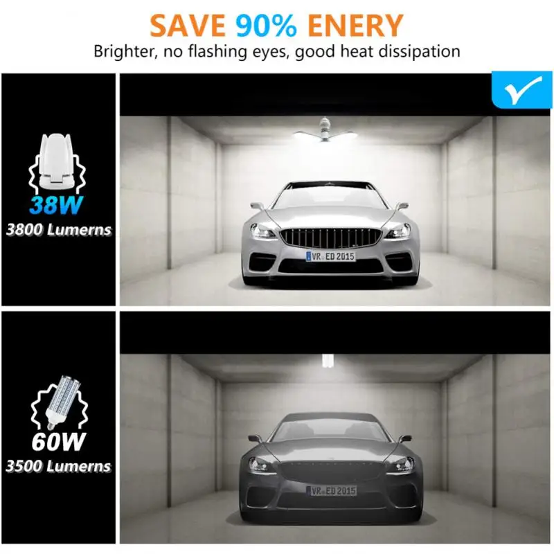 -Регулируемый панели: светодиодный гараж светильник разработан с четырьмя регулируемый светодиодный крылья, который может быть сложен до 90 градусов, а также имеется круговой направленный вниз светильник так, как вам нравится. Возможность сгибать дужки лампы, чтобы затопить более темные зоны комнаты, светильник очень полезен, приносим огромное количество светильник.