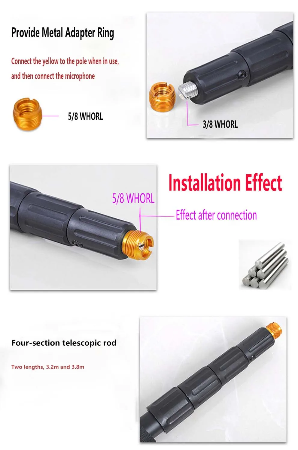GAZ-EX1 3.2M/3.8M Microphone Extension rod Interview Shrink Film Crew Pick Bar Booms Pole Carbon For Interviews recording