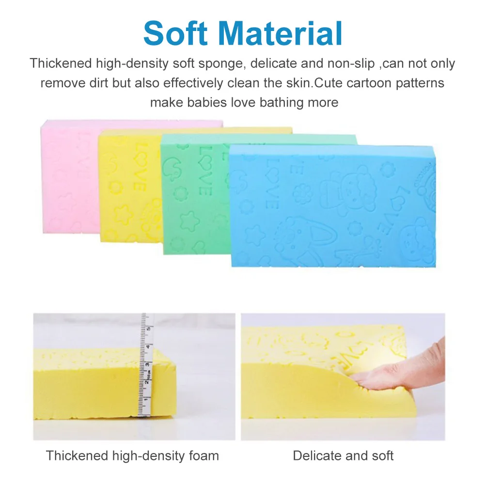 * 1. Утолщенная мягкая губка высокой плотности, деликатная и нескользящая, может не только удалять грязь со всего тела, но и эффективно очищать кожу. Милые Мультяшные узоры придают малышам больше любви к купанию.