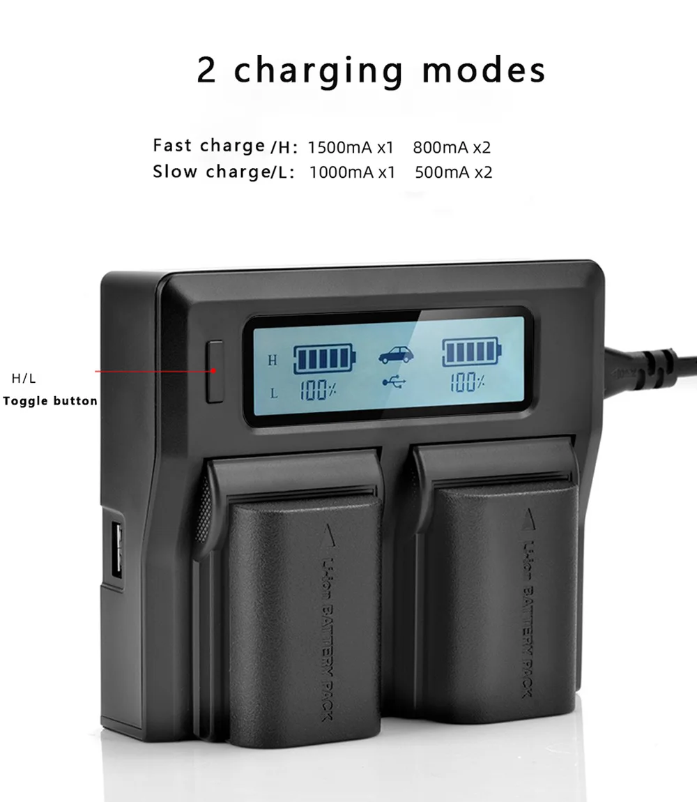 1. Интеллектуальное двойное зарядное устройство заряжает ДВЕ литий-ионные батареи одновременно.