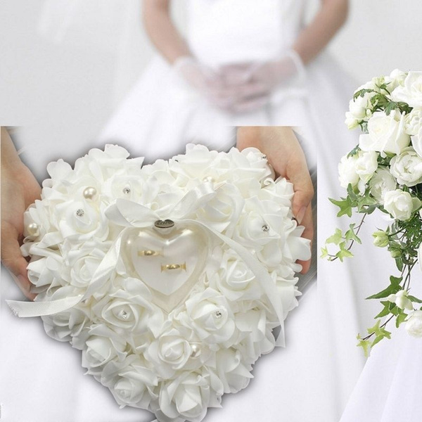 Свадебное кольцо цвета слоновой кости подушка, атласное украшение в форме сердца для помолвки предложение