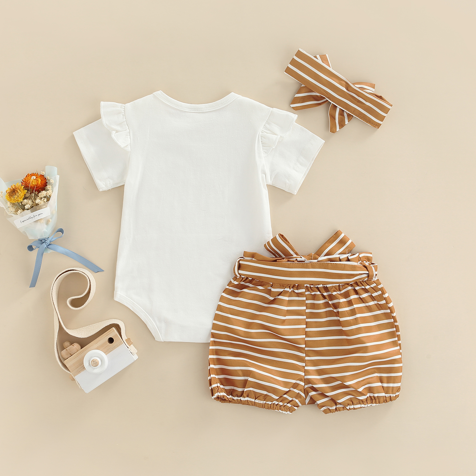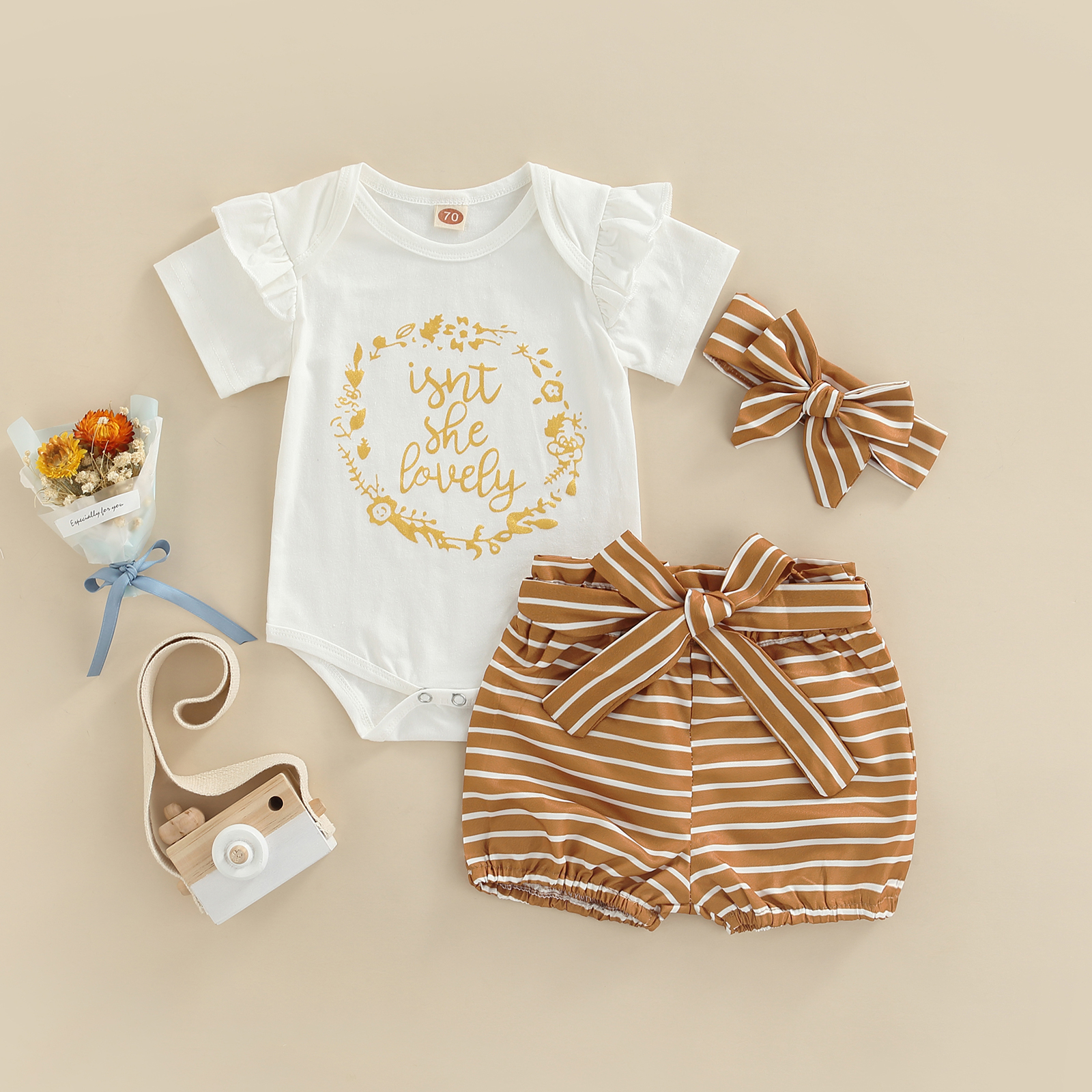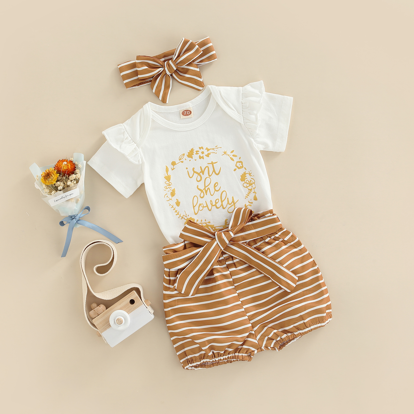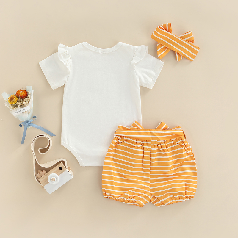 ОписаниеКомплект из топа и штанов для малышей; Комбинезон с короткими рукавами и круглым вырезом; Рубашка; Шорты с принтом; Детский костюм с повязкой на голову для девочекЕсли у продукта есть какие-либо проблемы с качеством, пожалуйста, свяжитесь с нами, мы поможем вам решить проблему как можно быстрее.