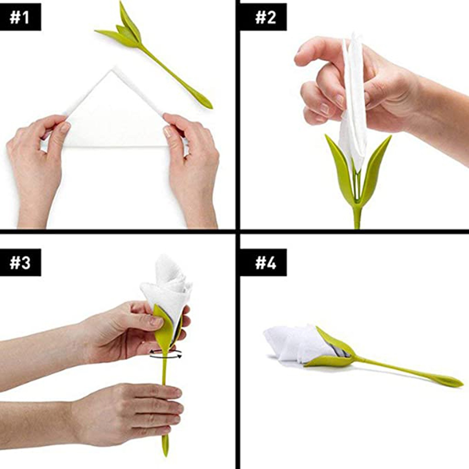1. Как использовать: вставьте сложенный в назначенный слот и поверните. Это просто в сложенном виде, образует красивый и элегантный цветочный бутон, который можно носить на столе, тарелке, вазе или тарелке
