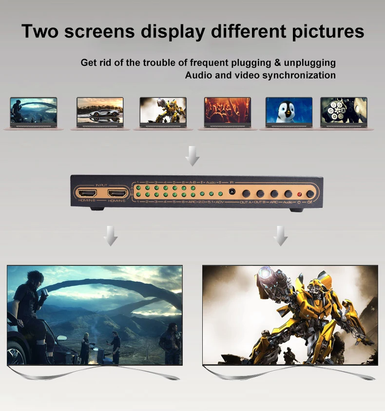 L шесть входов HDMI переключаются или делятся на два hd-дисплея.