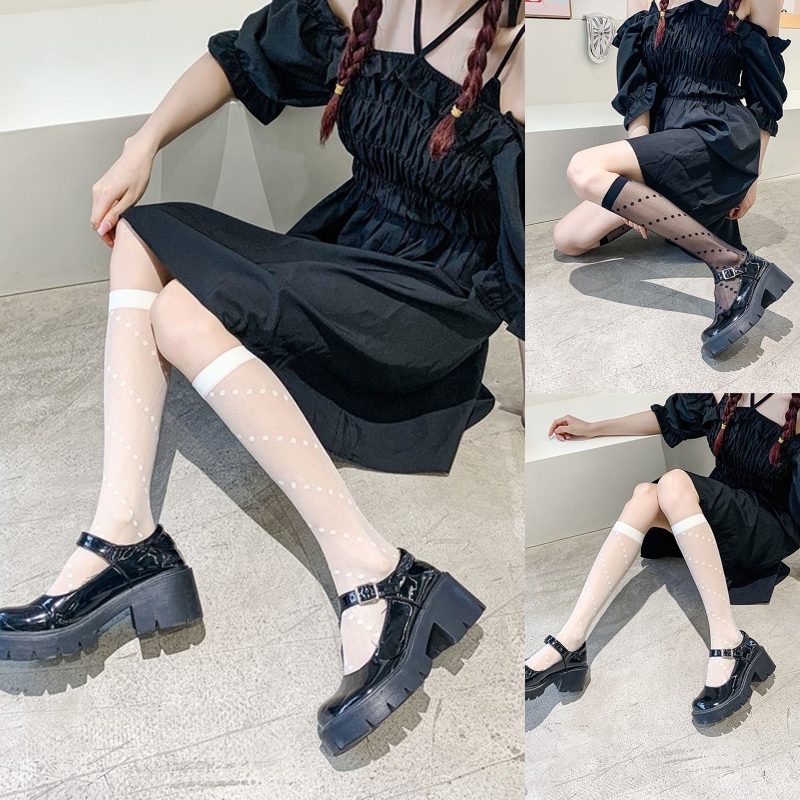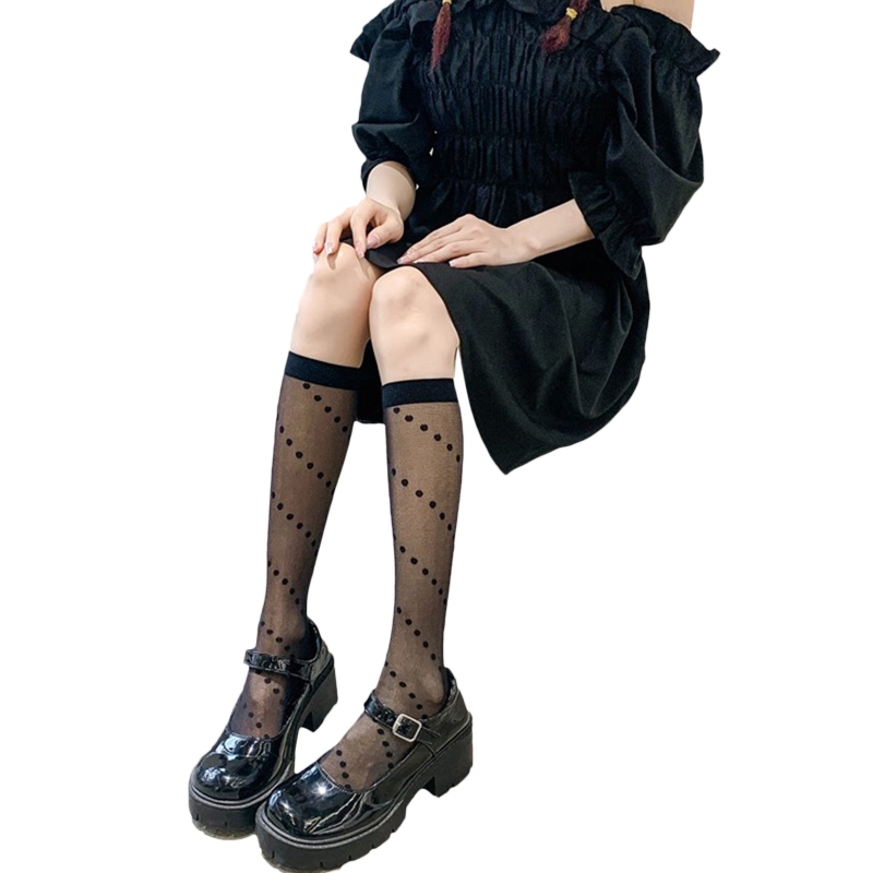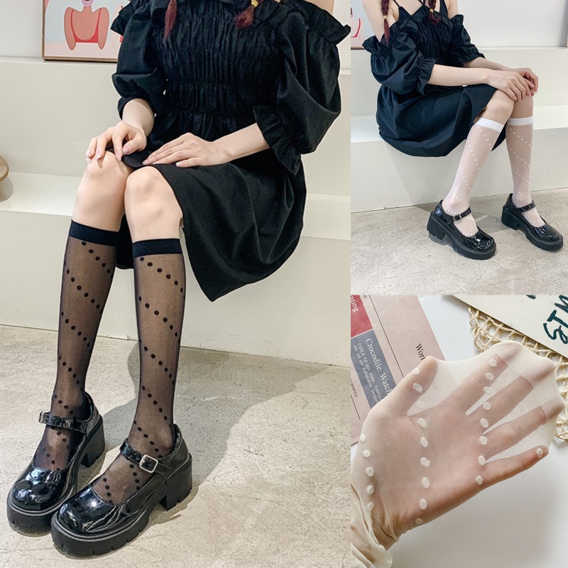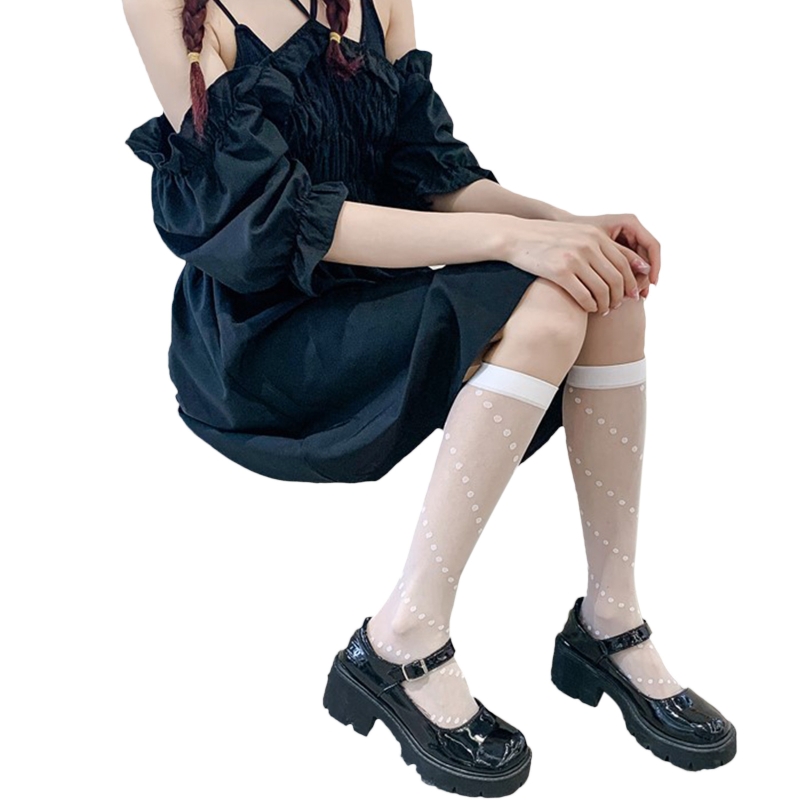 Гольфы в японском консервативном стиле, однотонные, с винтажным узором в горошек, прозрачная сетка.