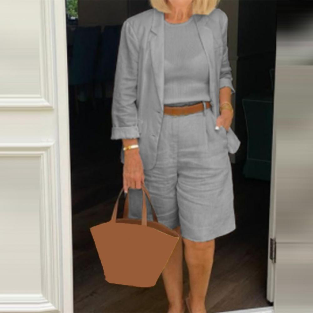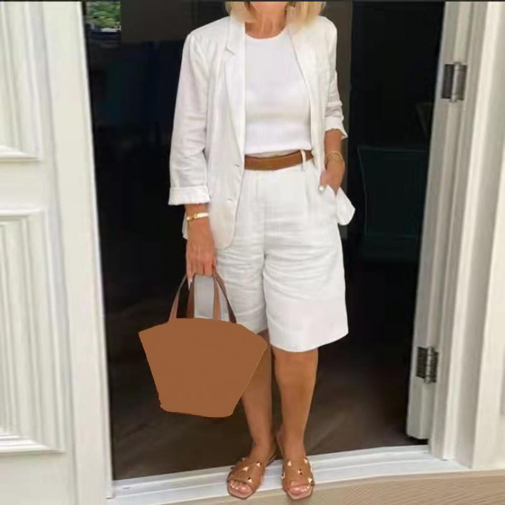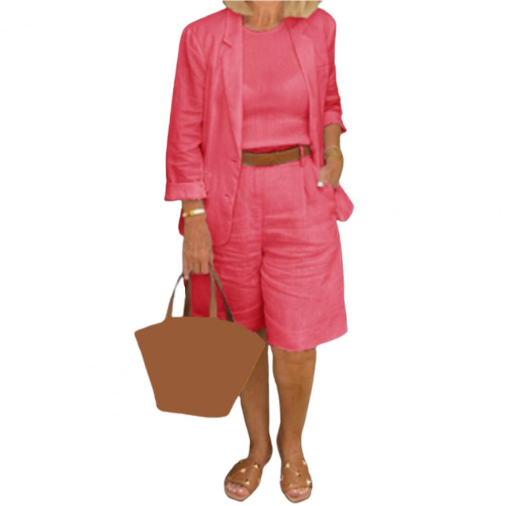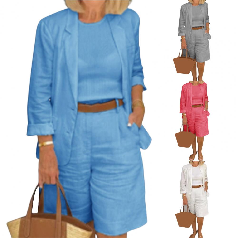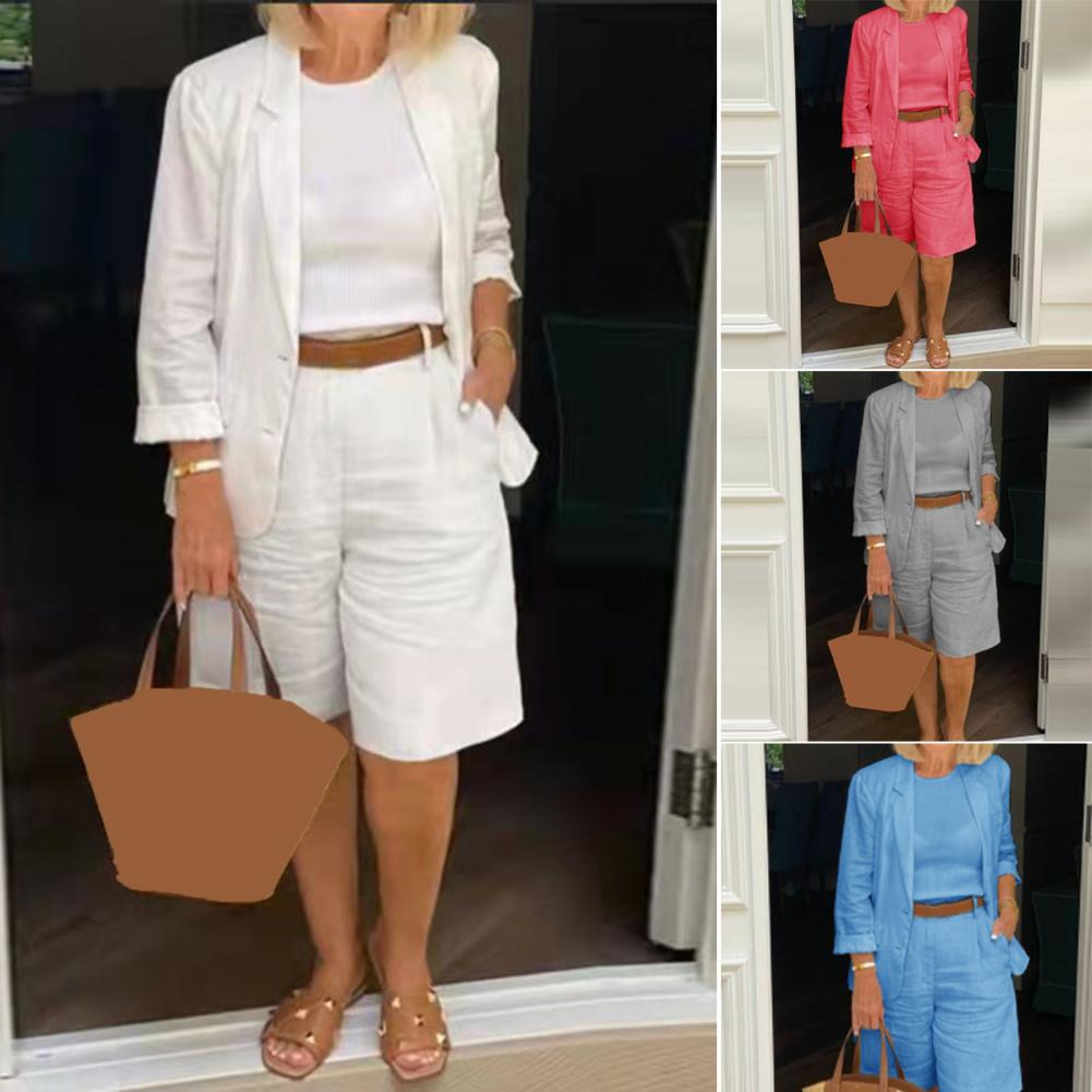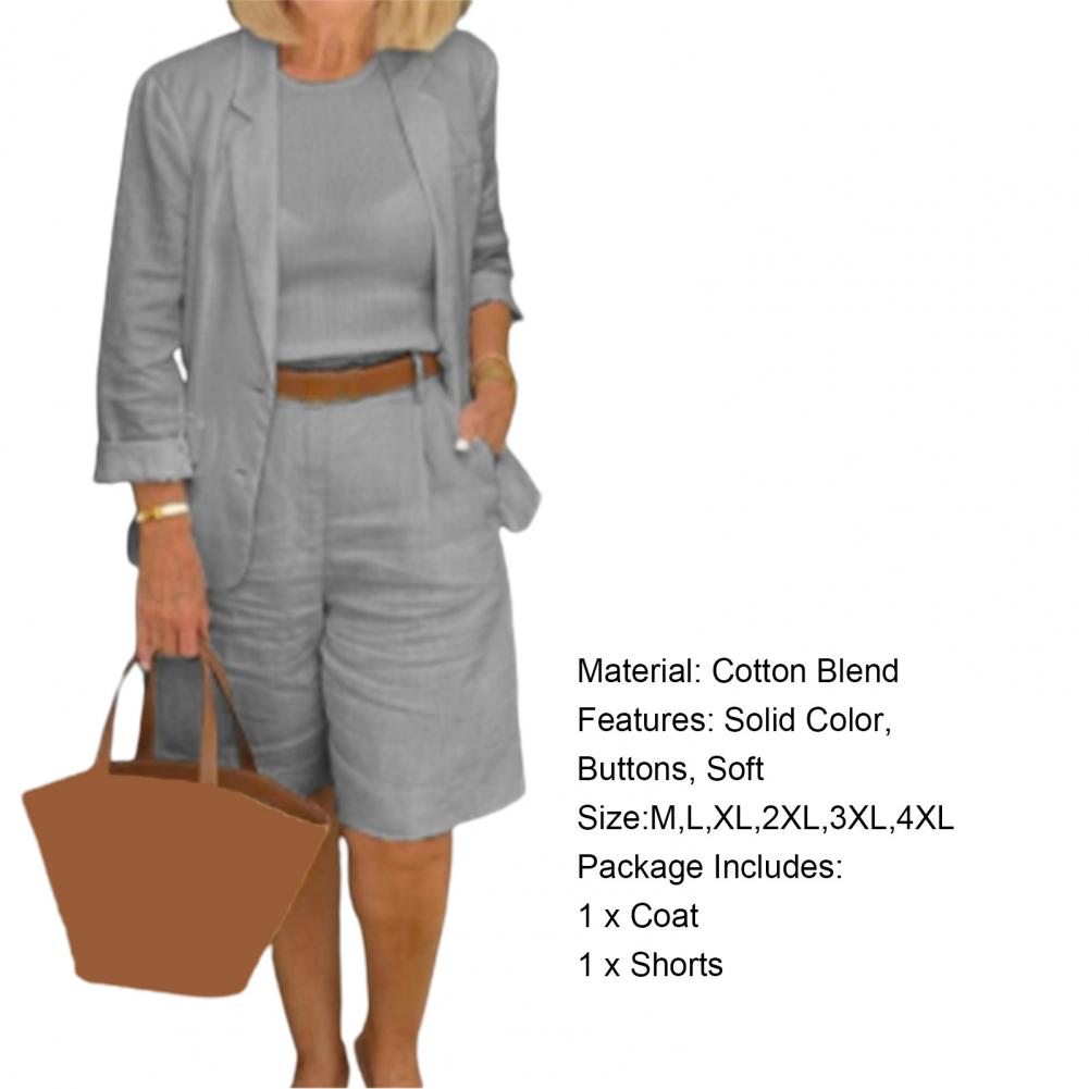 1 комплект Блейзер полушорты однотонный однобортный летний свободный наряд с пуговицами для офиса