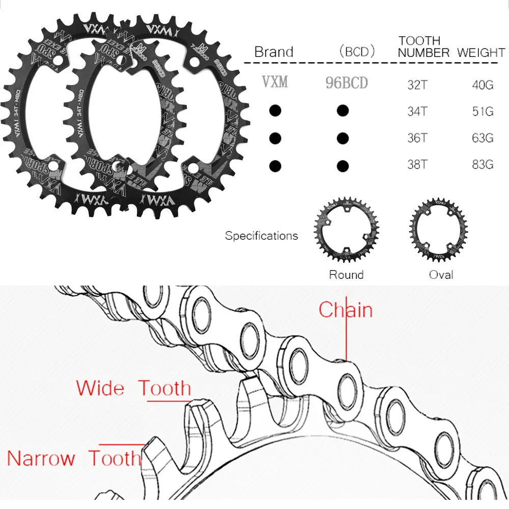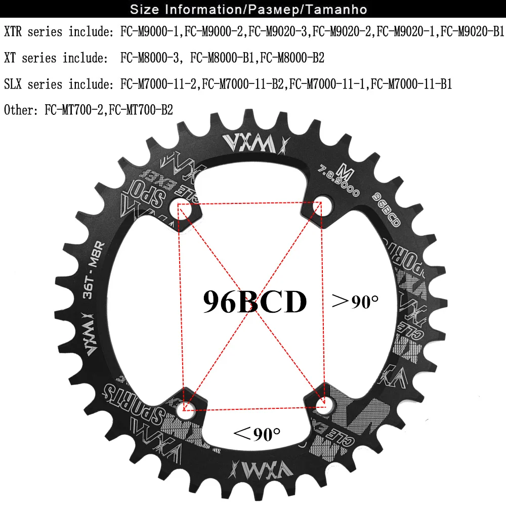 Применимо к 96BCD дорожных велосипедов и M7000/M8000/M9000 типа, горные велосипеды, велосипеды для активного отдыха фиксированных устройств и т. Д. Совместимость с большинством систем Shimano, 8, 9, 10, 11-скорость силовых установок.