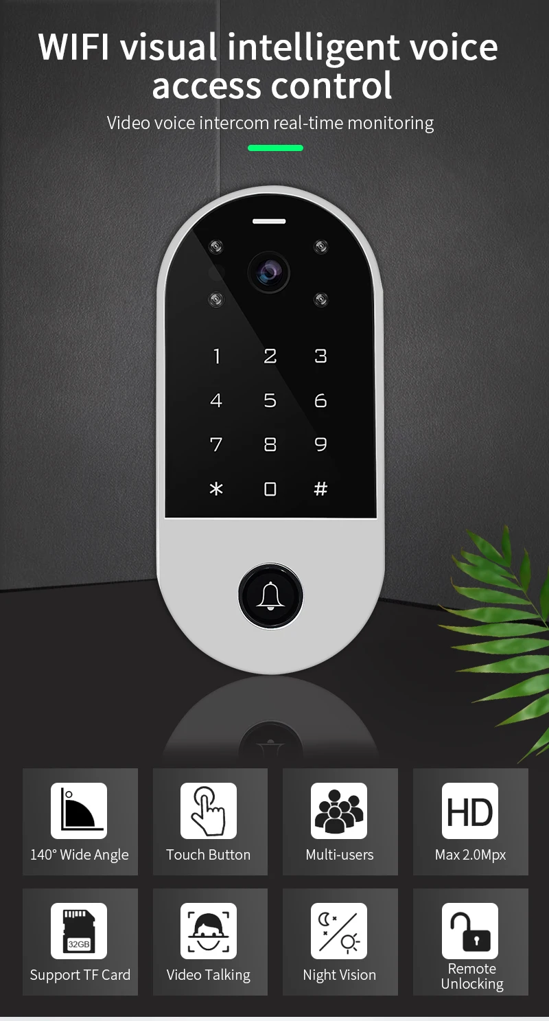 Устройство является контроллером доступа сенсорного ключа с поддержкой Wi-Fi внутренней связи. Люди могут установить приложение для внутренней связи со своим смартфоном и программировать контроллер доступа с помощью сенсорной кнопки. Совместимость с iOS (7,0 выше) и Android (4,3 выше)