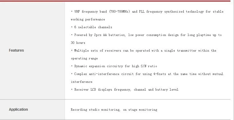 Параметры продукта:Бренд: TakstarМодель победы: WPM-200Тип тюнера: емкостныйБеспроводная: БеспроводнаяКанал: 6Подходит для: оленяWPM-200 беспроводной монитор 10 основных преимуществ:1 встроенный переключатель управления, регулируемый громкость. Переключение частоты, может стесняться сразу, если сигнал был помехой, прост в эксплуатации.2,6 канал регулятор, сегмент УВЧ, если сигналы или других помех может шатается частоту, проще работать.3. Светодиодный дисплей, дисплей, мощность, частота. Взгляните, с удовольствием.4 сверхдальние расстояния до 50-80 метров, стабильность сигнала, непрерывный тон, получение сильного, без искажений.5 может быть хостом с несколькими приемниками, подходит для многопользовательского случая.6 стереозвуков, чистый звук, воспроизведение звука и высокий уровень шума.7 для сцены с диапазонами или ритмом хора foldback мониторинга, играть более захватывающим.8. Две батарейки AA, низкое энергопотребление. Экологически чистый и прочный.