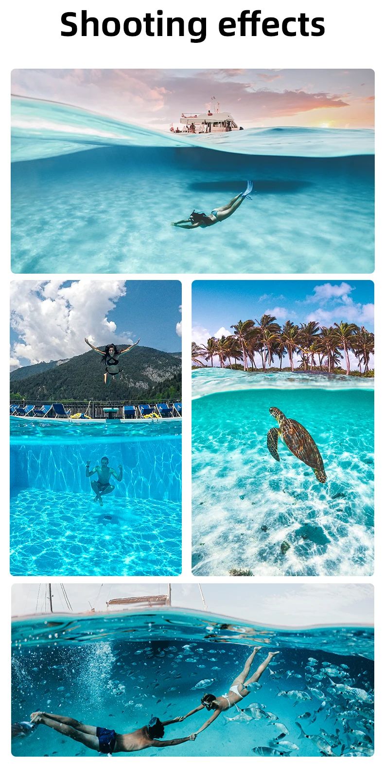 1. Перемещение водной линии от объектива позволяет одновременно снимать изображения как выше, так и под водой.