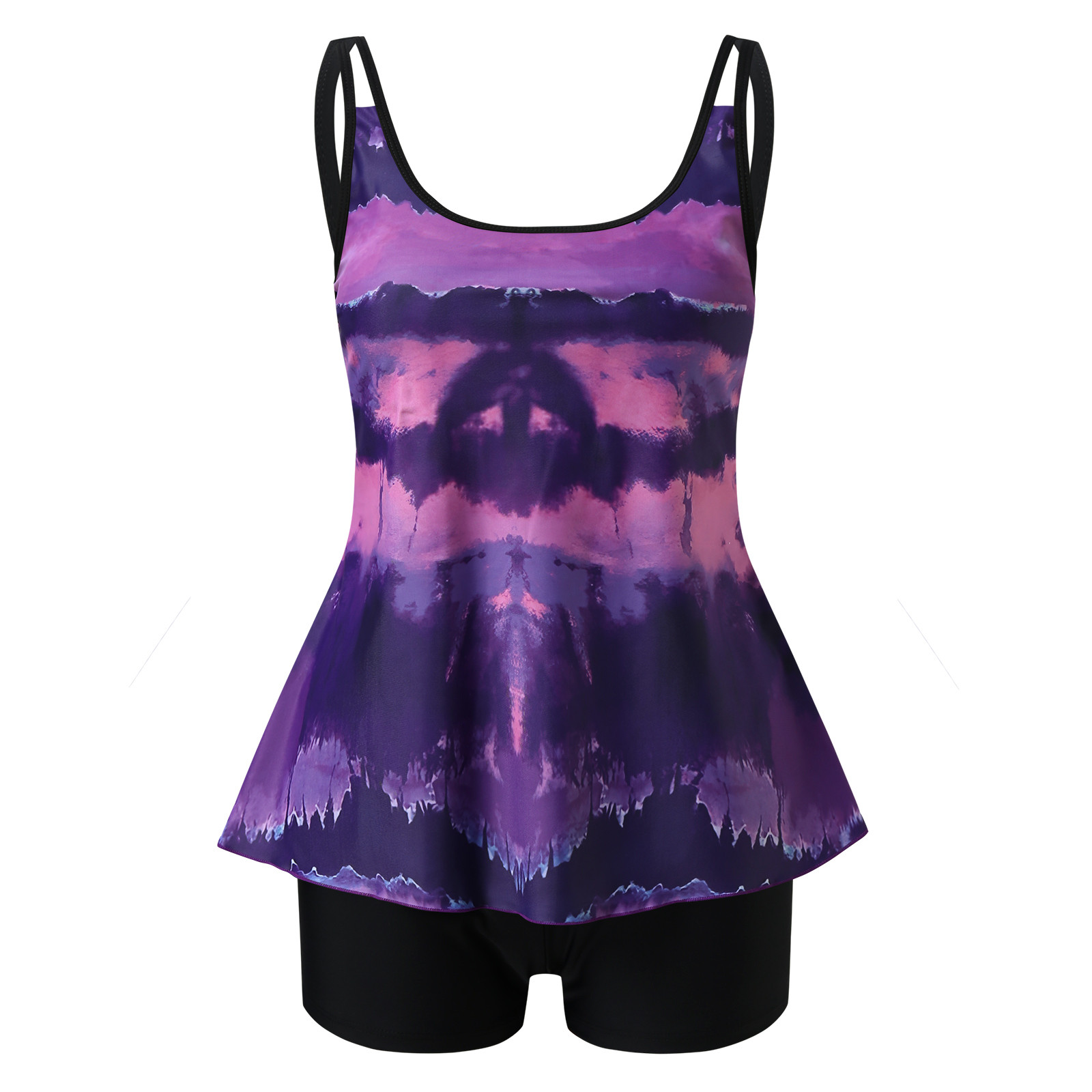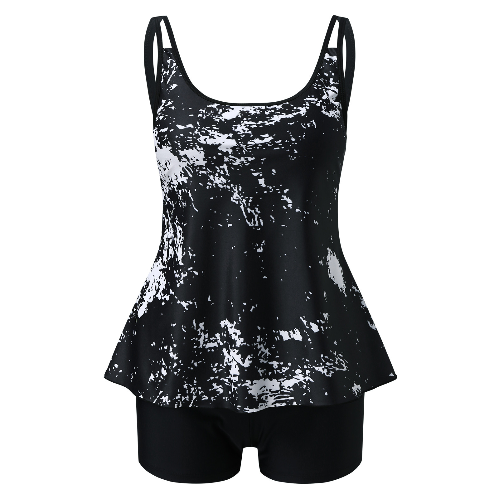 Купальники Танкини с цветочным рисунком для женщин, купальники с эффектом живота, купальники из двух частей, Купальный топ с шортами для мальчиков