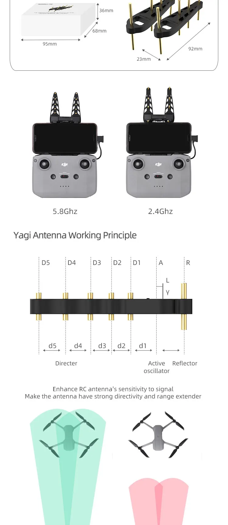 -Sunnylife Yagi антенна усилитель сигнала (5,8/2,4 ГГц) для DJI Mavic Air 2/Mini 2.