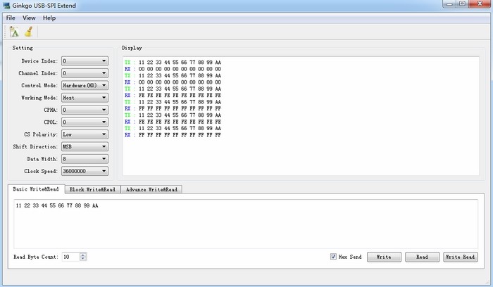 USB-SPI расширения: передача данных или чтение могут быть предварительно отредактированы в списке, и программное обеспечение может считывать и записывать данные в соответствии с режимом работы редактирования списка. Рекомендуется использовать это программное обеспечение при более сложном управлении чипом интерфейса SPI;