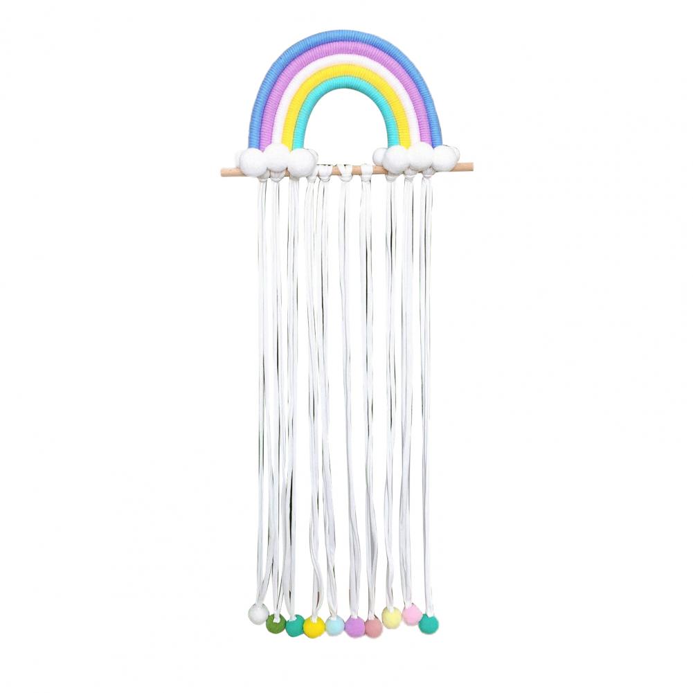 Держатель с бантиком для волос может добавить элегантный штрих в комнату для девочек. Так как он имеет Радужный цвет, маленькие хлопковые шарики и украшение с кисточкой, которые делают его милым и привлекательным.