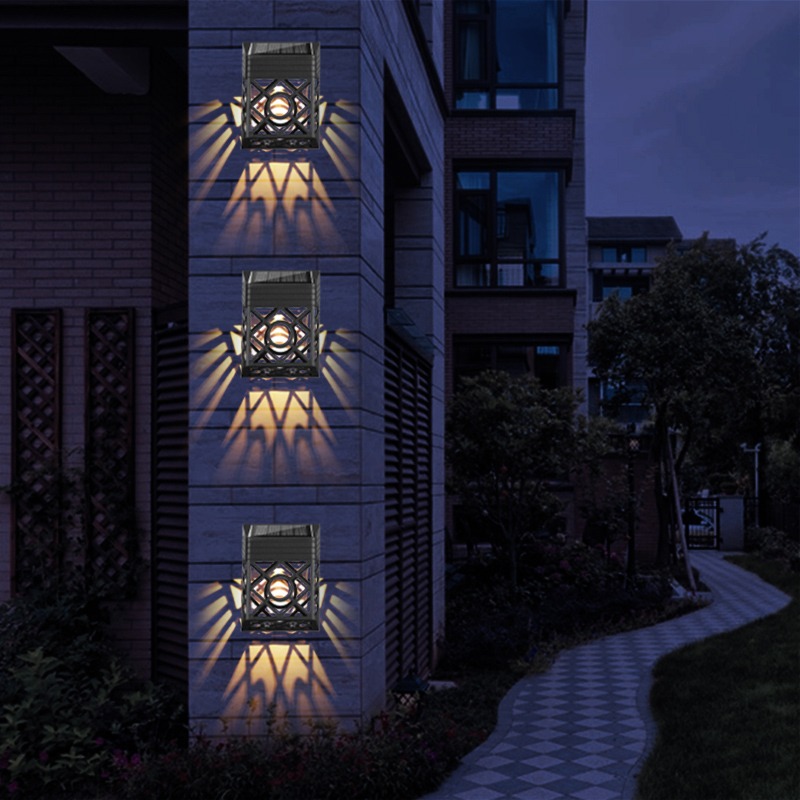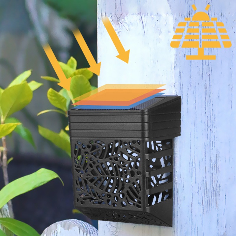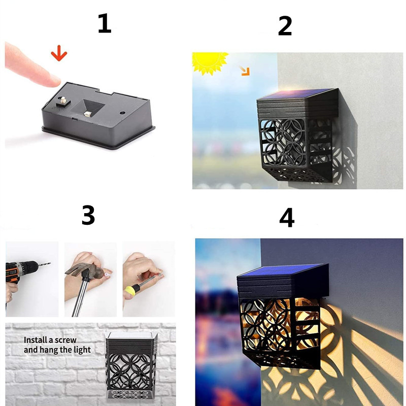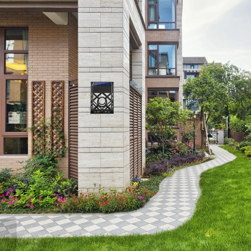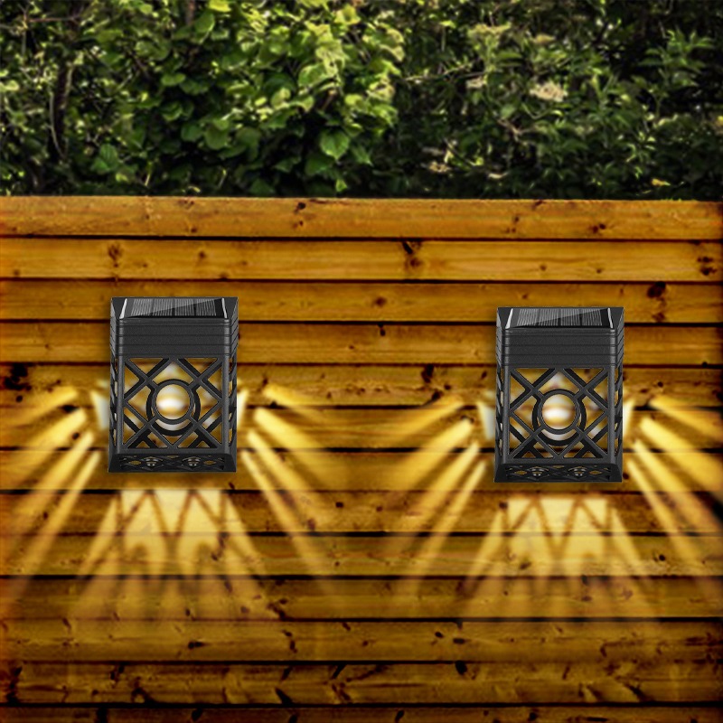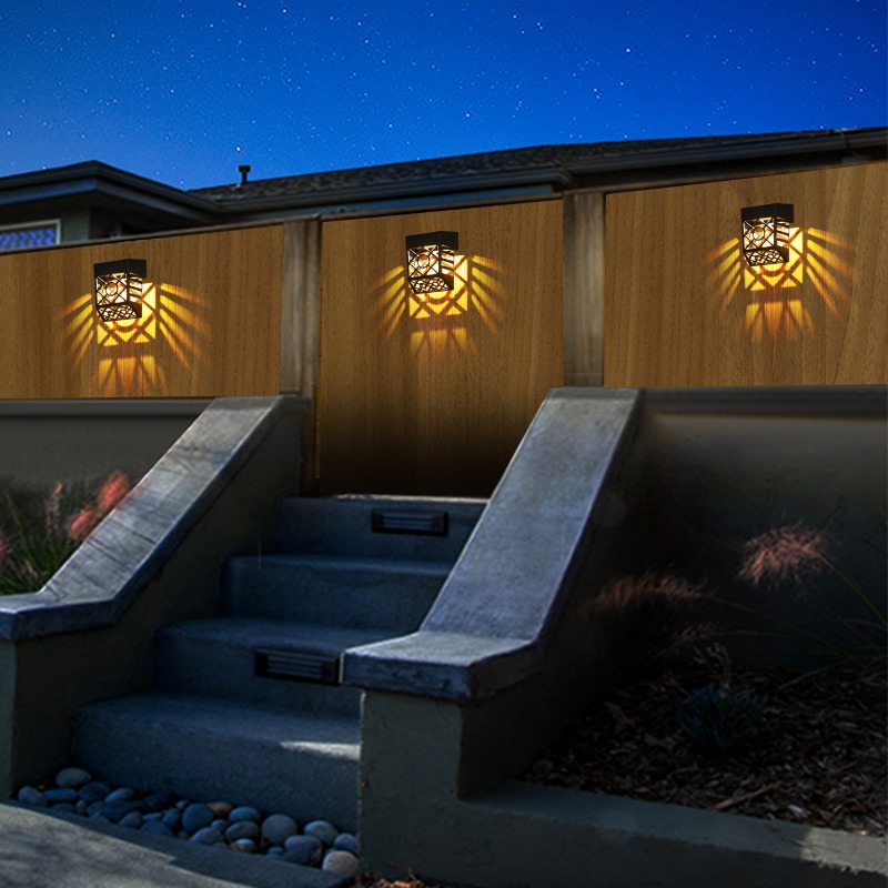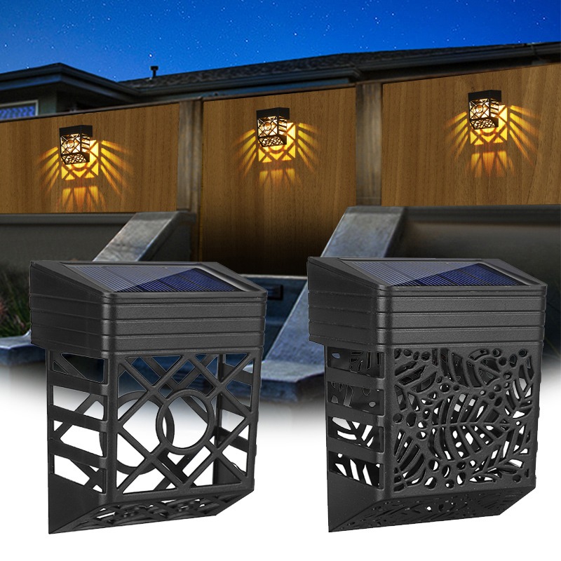 << Unique decorative lighting: Delicate hollowed pattern. This LED fence light has a unique, carved pattern which can decorate your floor and wall when illuminated in your courtyard,garden and wherever you place it.
