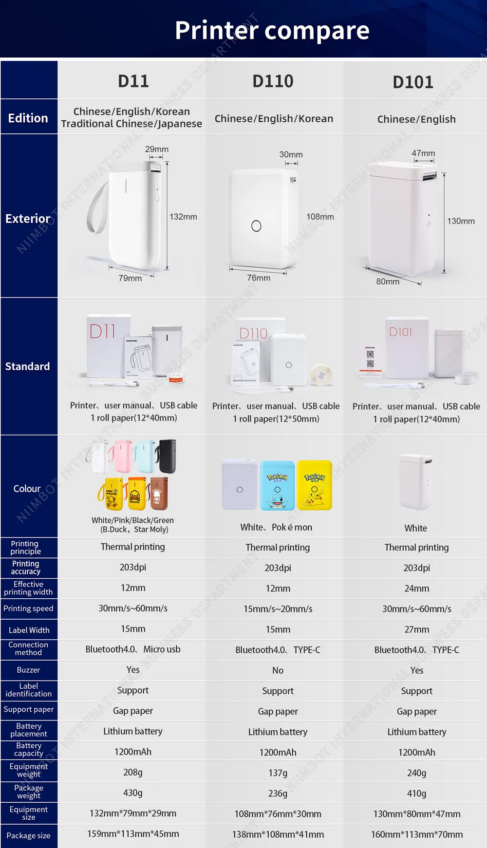В этой ссылке 3 типа принтеров, Niimbot D110 /D11 /D101Bluetooth принтер этикеток, пожалуйста, выберите тот, который вы хотите. Диапазон ширины бумаги D11/D110 составляет 12-15 мм, а D101-10-25 мм. Спасибо за понимание.