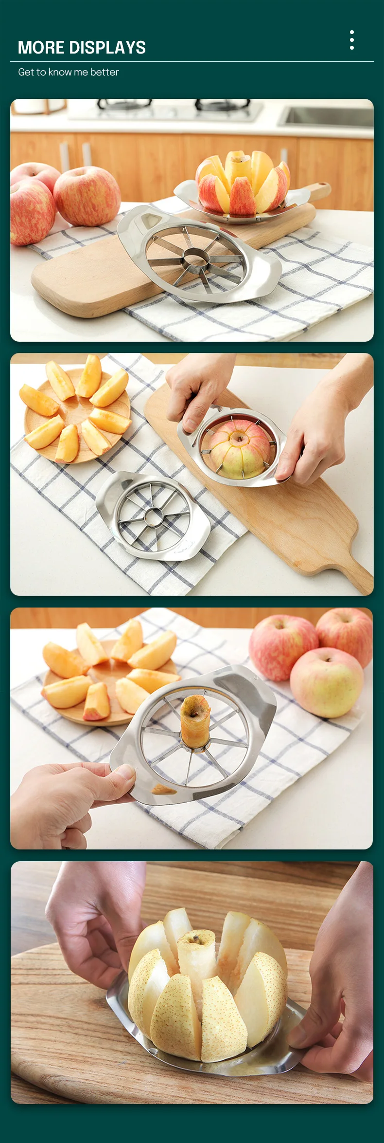 1. Можно быстро нарезать яблоки, груши и другие фрукты на 8 штук.