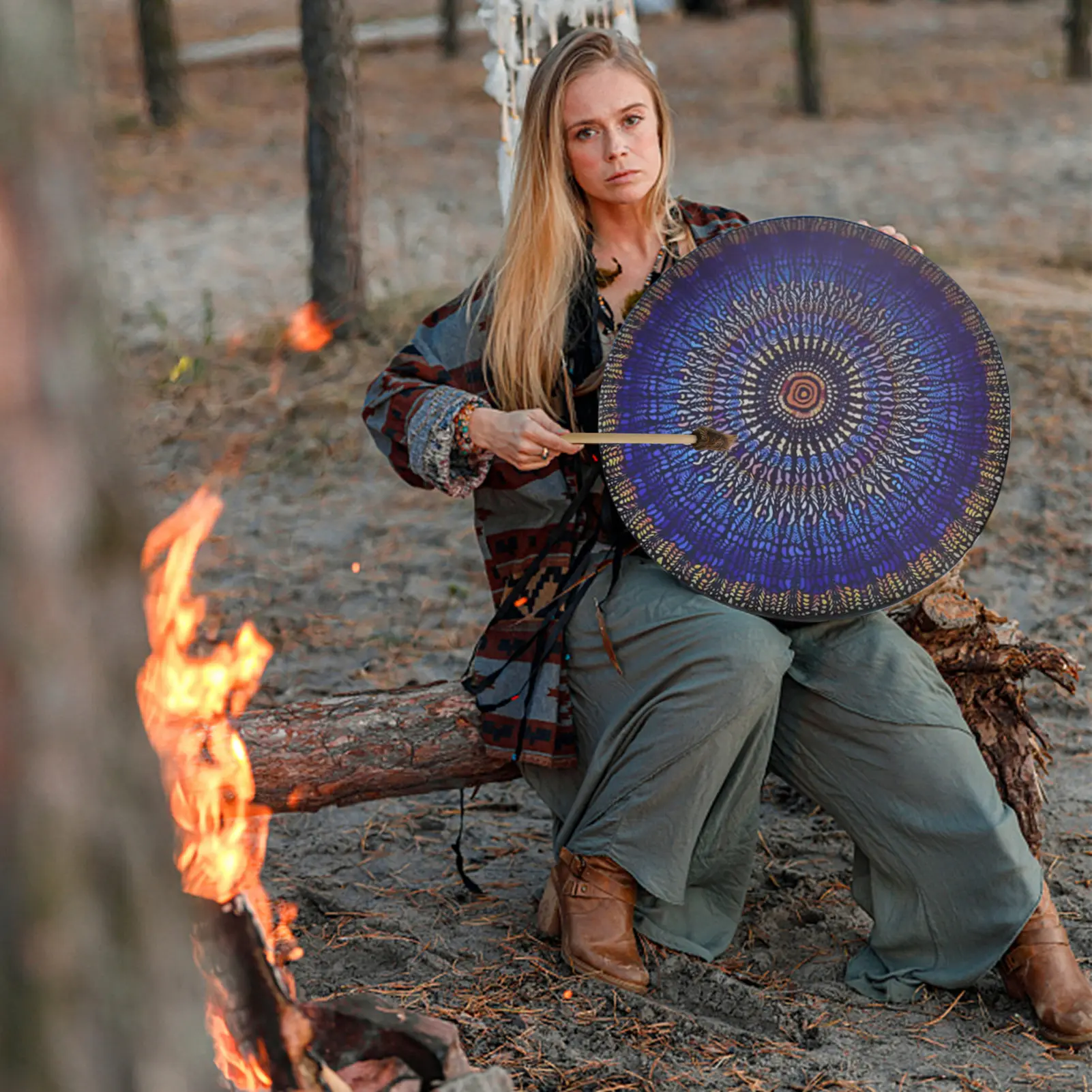 Шаман барабан Дерево жизни орнамент деревянный шаманский барабан ударная рама барабан музыка духовный шаманский барабан с барабанной палкой