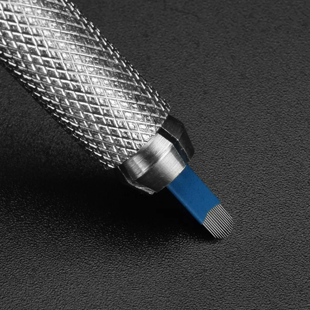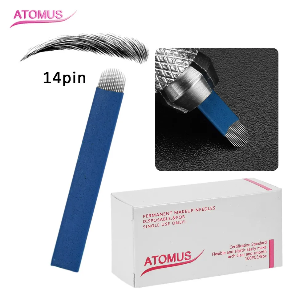 14 Pin микро Blading лезвие для татуажа набор игл 100 шт Синий U Тип Лезвия Перманентный макияж руководство брови лезвия для тату 2022