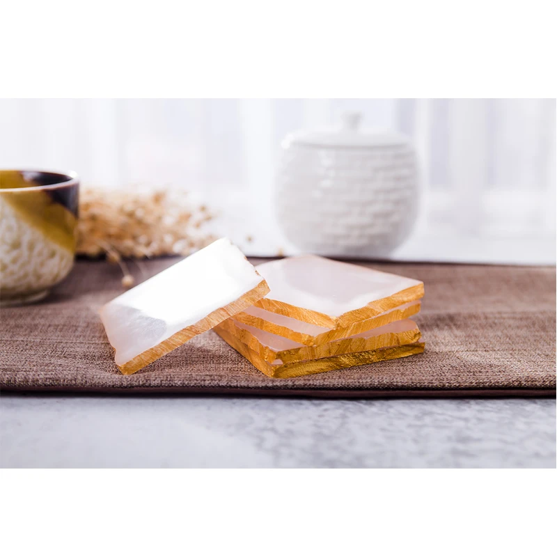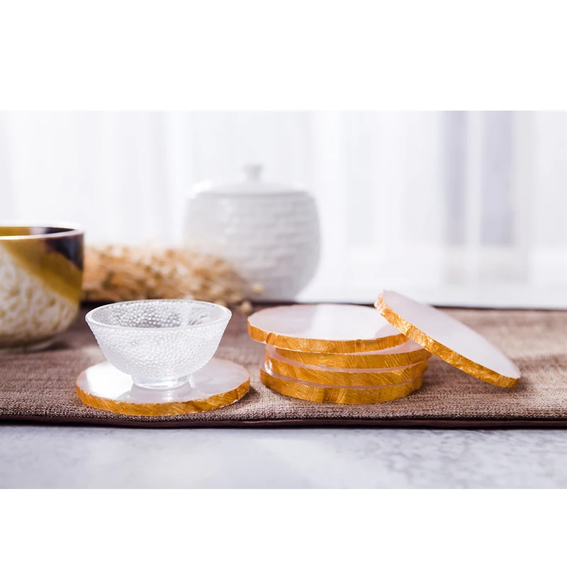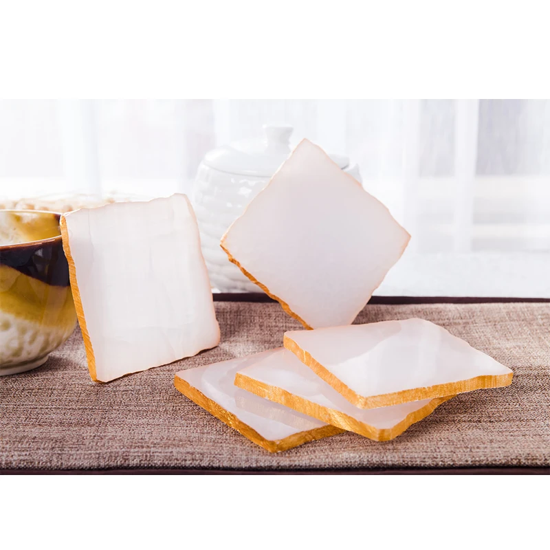 Драгоценный камень coaster розовый оникс коврики колодки Золотая инкрустация Роскошный декор для вечерние барные салоны