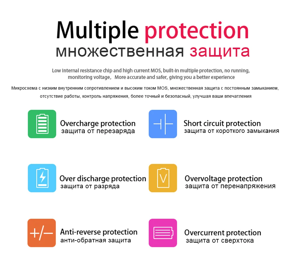 Защита от переразряда, защита от перенапряжения, защита от обратного хода