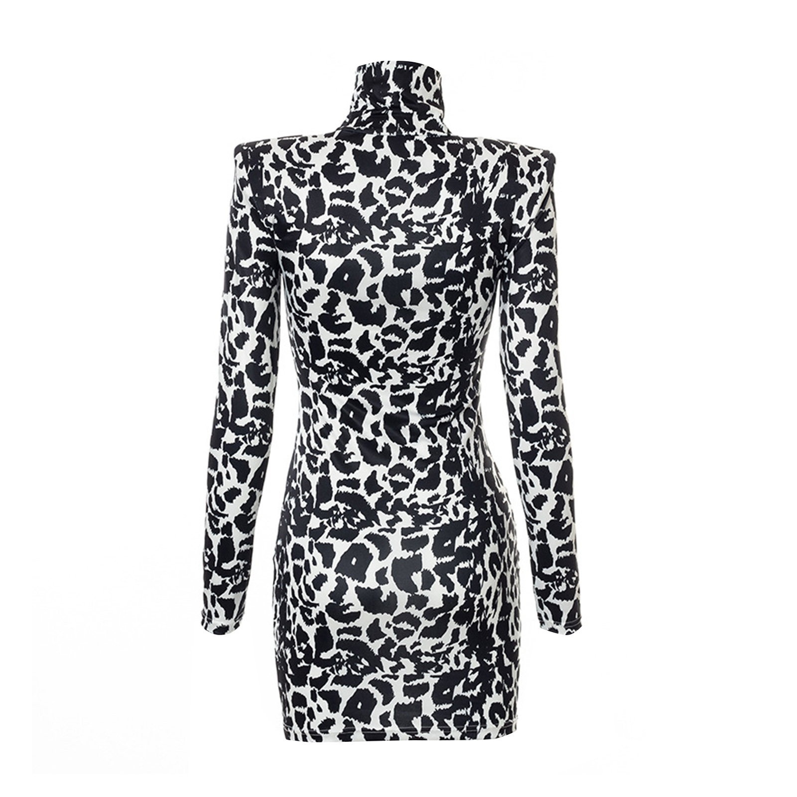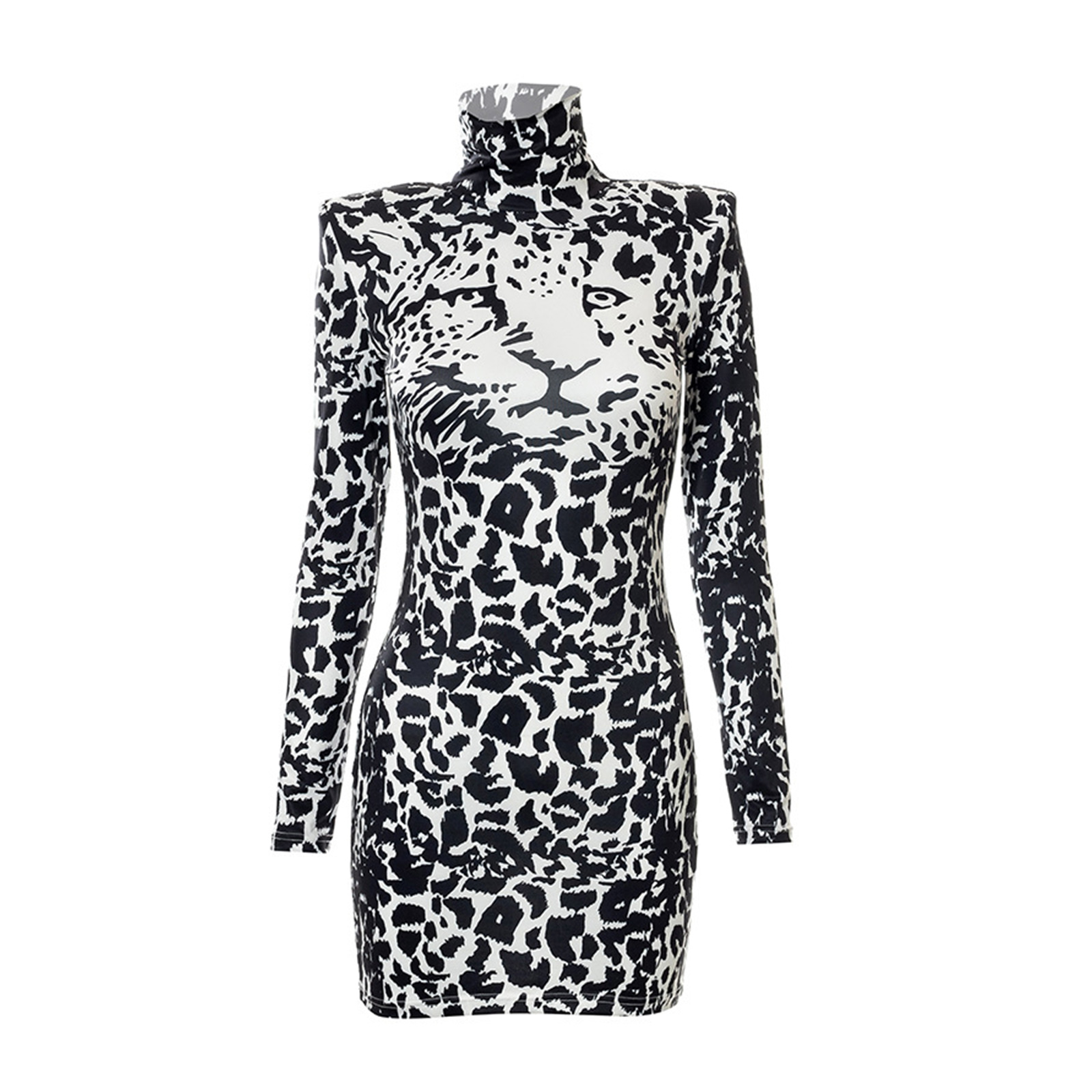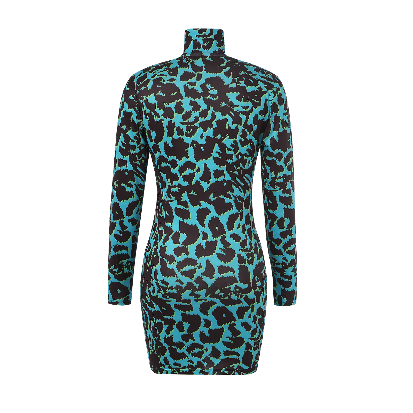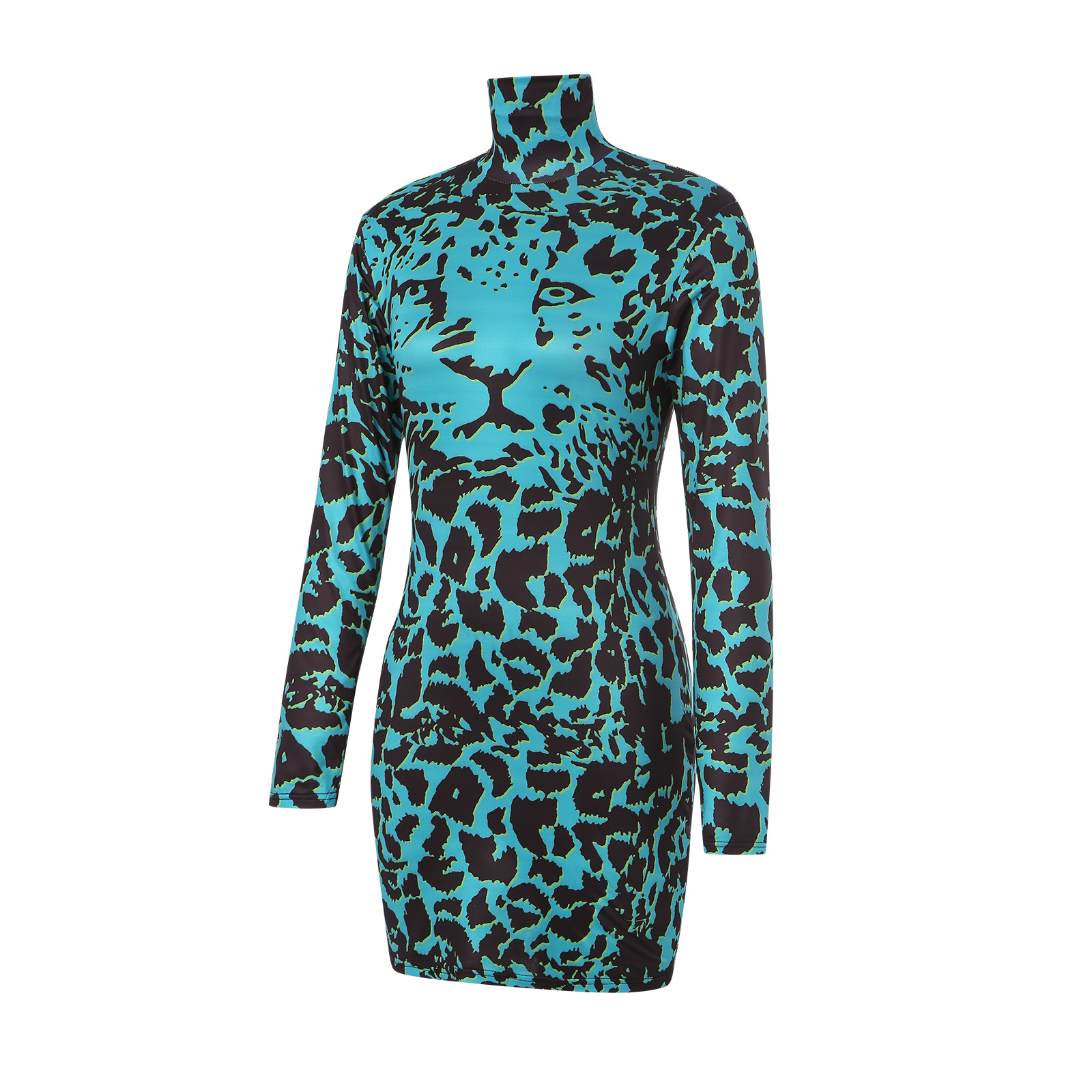 Женское облегающее платье, с длинным рукавом и высоким воротом, с вырезами, из кожи тигра, осеннее платье средней длины, белое/зеленое