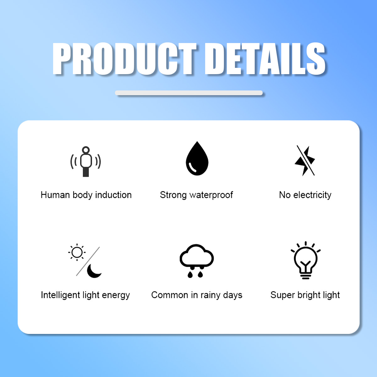 Светильник ваш учреждением дороги: индукционный угол наклона данного солнечный светильник-270 °, индукционный диапазон составляет 3 ~ 5 метров, светильник со временем вашей дорога домой, избавление от темное время суток.