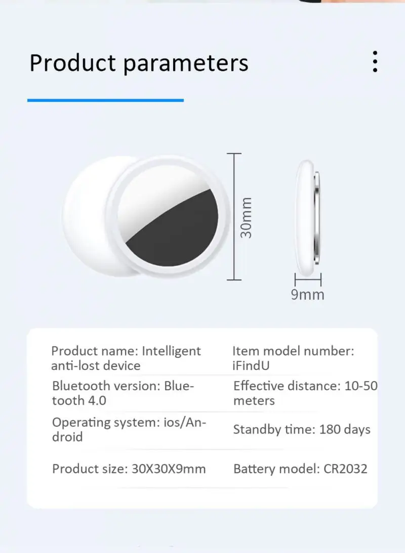 • [Совместимость и размер:] App. Размер: 1.5inX1.5inX0.29in. Он поддерживает iOS и Android-телефон. Подходит для кошелька, автомобиля, детей, домашних животных, сумок, чемоданов или других вещей.