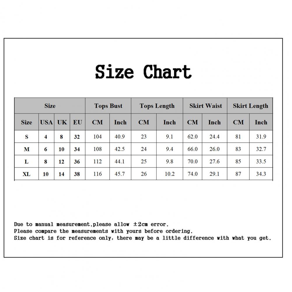 Размеры: S, Топ Длина: 23 см/9,1 ", обхват груди: 104 см/40,9", юбка Длина: 81 см/31,9 ", юбка на талии: 62 см/24,4" (прибл.)