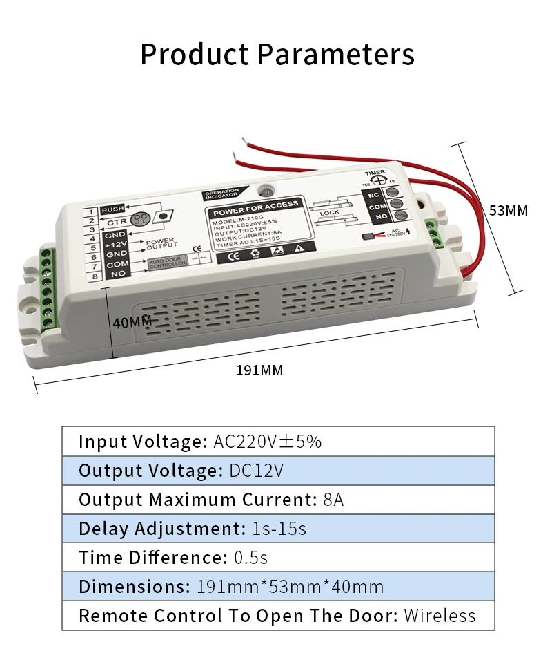 Конвертер для подключения к другим элементам управления. Контроль времени для регулировки времени открытия от 1-15 с.