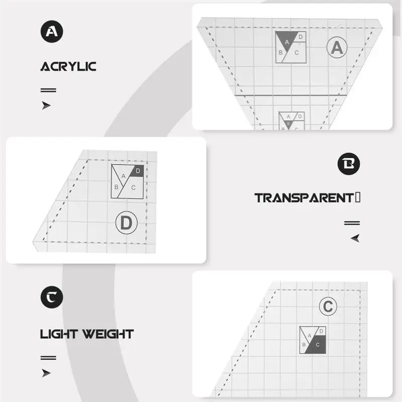 Изготовлен из высококачественного акрилового материала для длительного использования. Он имеет различные формы, которые обязательно помогут в ваших проектах. Отлично подходит для шитья, вышивки, квилтинга, лоскутов, живописи и других поделок ручной работы.