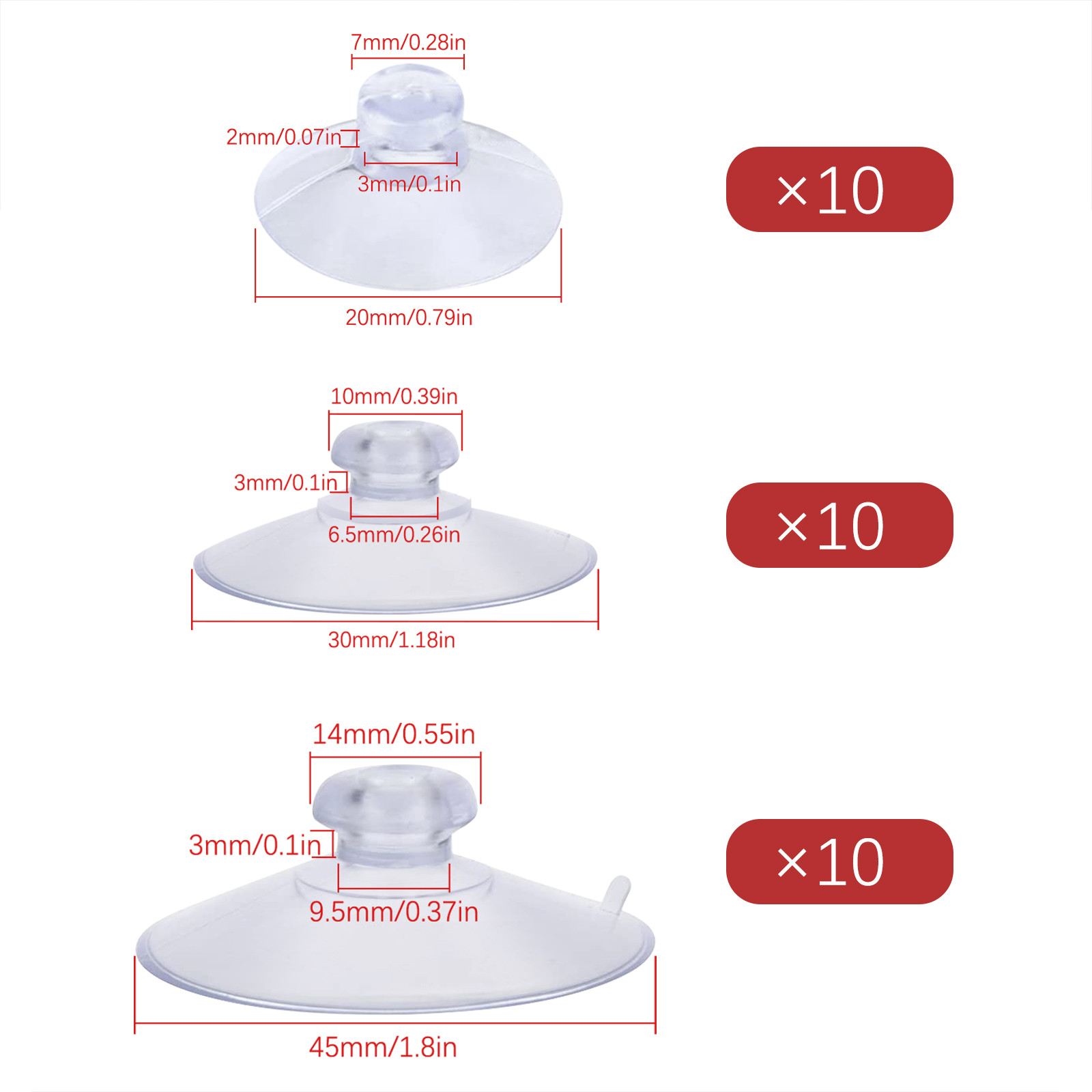 Присоски в 3 размерах-10x45 мм, 10x30 мм, 10x20 мм в общей сложности для 30 присосок, каждая в форме грибной головки