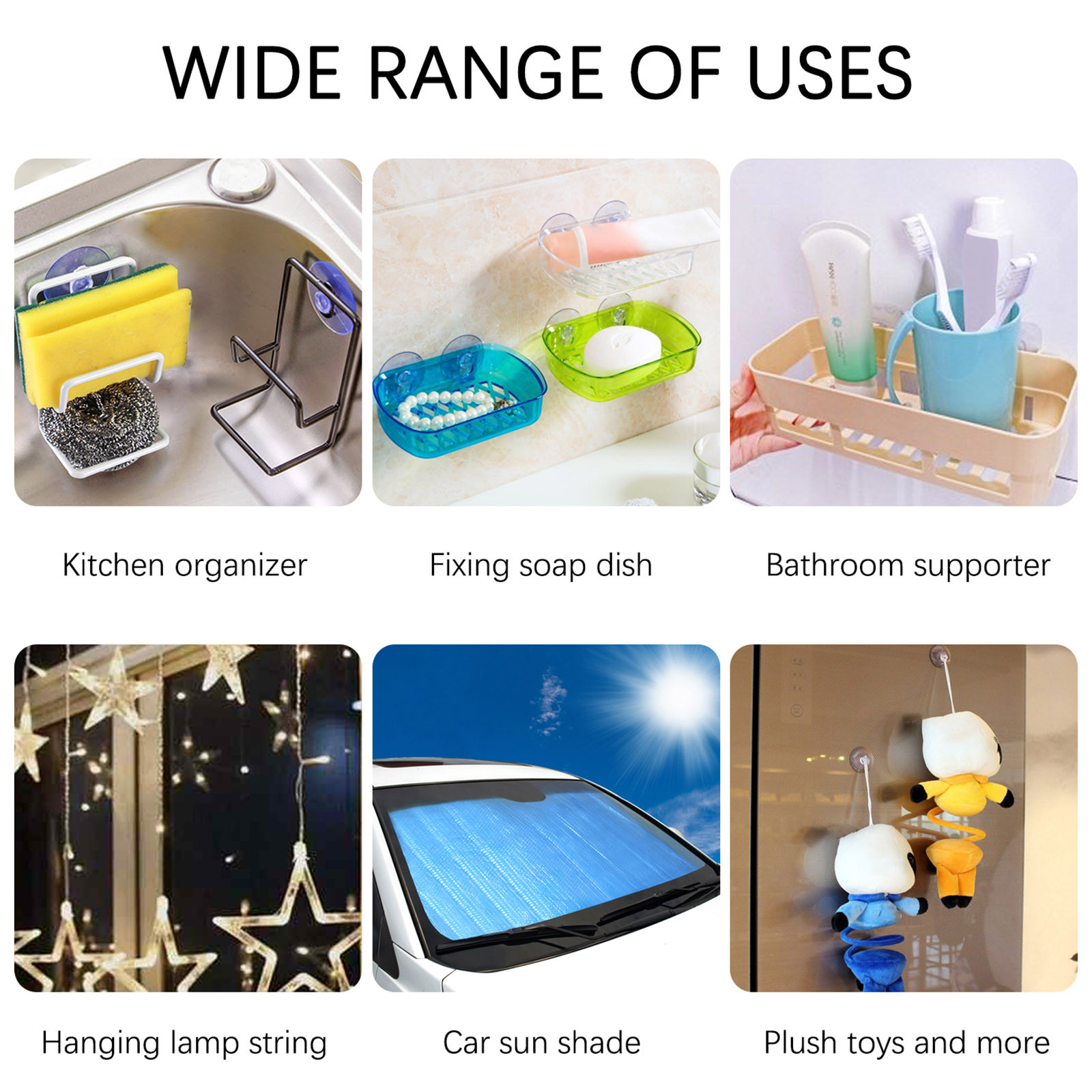 Другие виды применения-идеально подходит для фиксации мыльной посуды, стендов для ванной комнаты, кухонных органайзеров, подвешивания различных знаков и небольших огней на окнах во время праздников