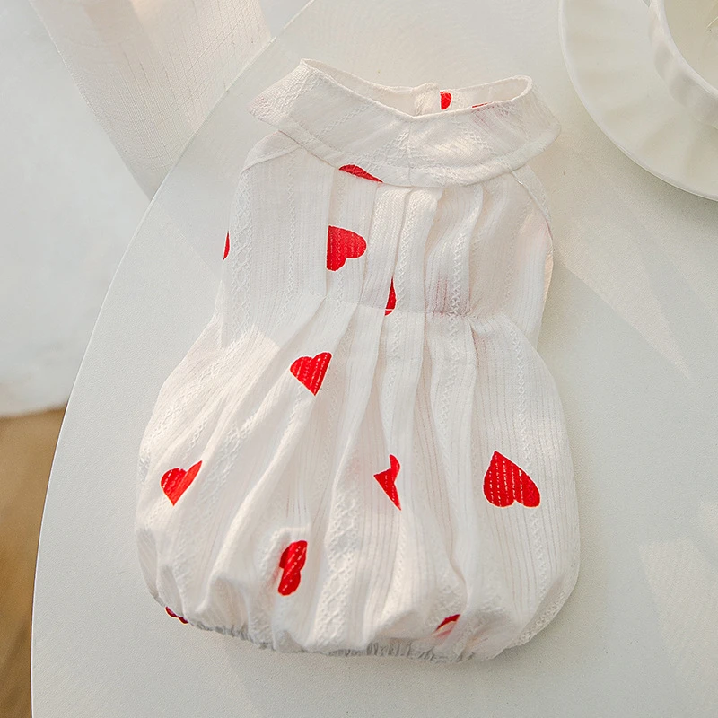 Летняя Одежда для питомцев, кружевное платье с принтом в виде сердечек для собак, одежда для маленьких и средних щенков, одежда для кошек, померанские наряды