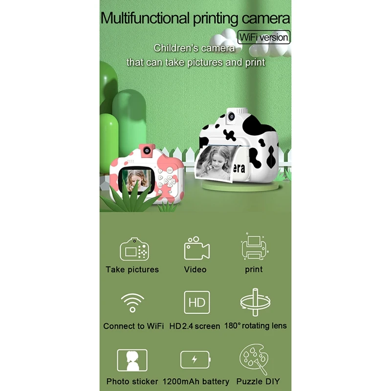 1. Мгновенная печать (односекундная съемка), удобная кнопка для режима Фото/печати, переключение в любое время, только фотографирование без печати, печать фотографий или печать в фотоальбоме, печать без карты памяти 2. Он может подключаться к мобильный телефон через Wi-Fi для печати фотографий на мобильный телефон, документов для печати, камеры и мобильный телефон Функция обмена фотографиями и видео, приложение имеет: печать на заметках (та же функция Amazon crowdfunding note machine): 13 видов шаблонов для печати заметок/21 вид шаблонов для печати списка/более 150 шаблоны для рисования 3. Встроенный 16 языков, 180 градусов вращающаяся камера, удобный Селфи, видео, видеоблог, 2,4 дюйм (ов) цветной экран, 1080P видео высокой четкости эффект, 4K Разрешение фотографий. 4. Стоимость печати бумаги низкая, один рулон может напечатать 100 фотографий, а черно-белые фотографии могут быть заполнены цветом 5. Встроенный аккумулятор 1200 мА · ч, может делать 2000 фотографий непрерывно, записывать 2 часа, печатать 100 листов фотобумаги. Поддержка регулировки разрешения и плотности печати, тайм-лапа для фотографирования, циклической записи и аудио записи. Термопечать, чернила не требуются, экологически чистые материалы, безопасные и здоровые Разрешение изображения (Video): Full HD (1920x1080) Мегапиксель: 20.1MP- 24.0MP Тип экрана: Стандартный экран Размер дисплея: 2-3 дюйма Формат записи: Изображение: JPEG видео: AVI Тип линз: объектив Periscope Тип карты памяти: sd-карта Тип датчика: CCD Тип видоискателя: электронный Режим питания: литиевая батарея Тип набора: наборы зумов Цвет: черный/розовый Материал: АБС-пластик Посылка: 1 x камера Мгновенной Печати 1 х USB кабель 1 x ремешок 3 х бумага для печати 1 х руководство на английском языке Только вышеуказанная посылка, другие товары не включены. Примечание: светильник и различные дисплеи могут привести к тому, что цвет товара на картинке немного отличается от реального. Допускается погрешность в измерениях +/- 1-3 см.