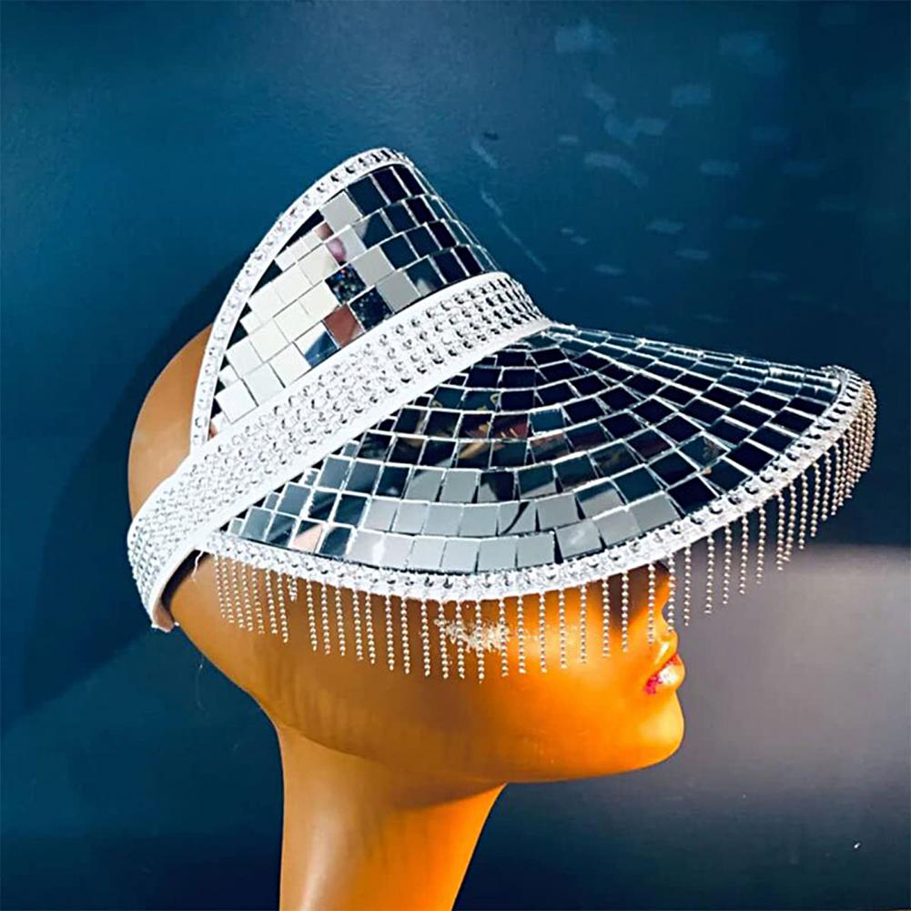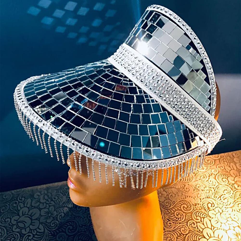 Принята зеркальный с блестящей поверхностью, уникальная футболка с кисточками искусственная Стразы дизайн, таким образом диско козырек шапка настолько привлекательный, привлекательный и ослепительно. Это определенно поможет вам быть центром внимания на любой вечерние дискотеки.