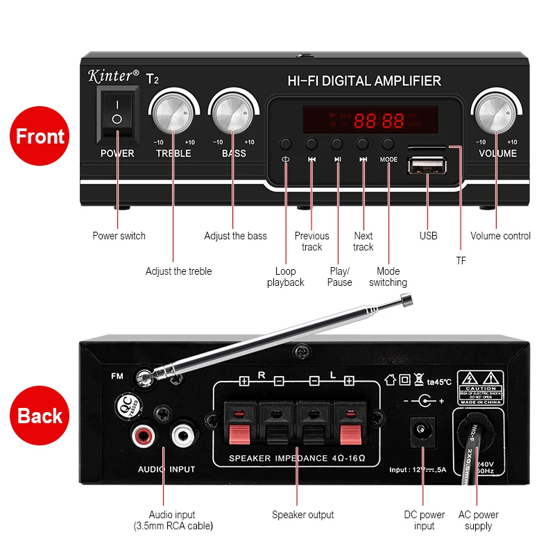 Посылка: аудиоусилитель * 1, пульт дистанционного управления * 1, руководство * 1, кабель США/ЕС/Великобритании * 1