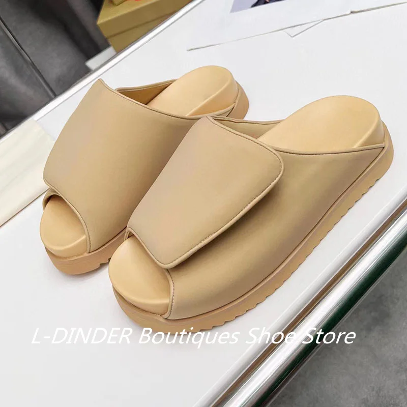 Летние шлепанцы на толстой подошве с волшебной лентой; Обувь на плоской платформе с открытым носком; Обувь для отдыха; Обувь для дома; Уличная обувь на плоской подошве; Женские мюли