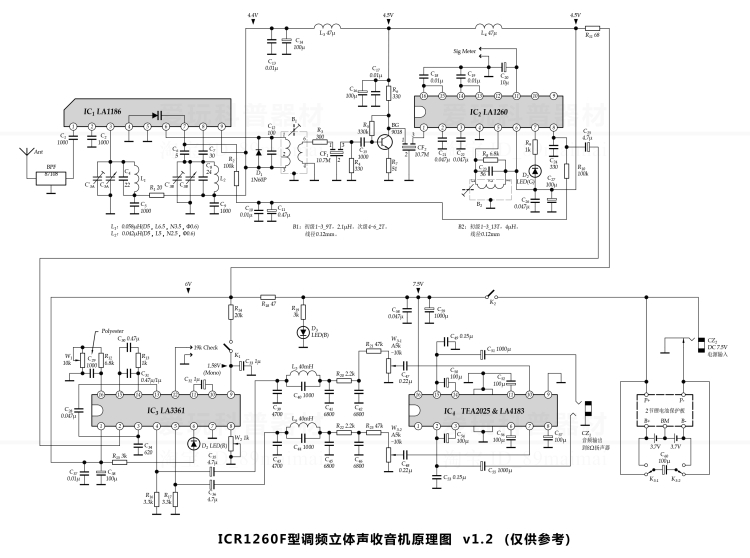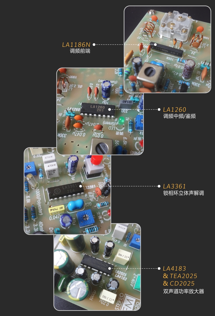 The ICR1260F FM radio kit uses three SANYO dedicated chips to form the receiving part: LA1186N is an FM front-end chip, which is used in many home audio products. LA1260 is an FM/AM mid-amp chip, which is currently commonly used in mid-to-high-end radios. LA3361 is a very classic stereo decoding chip, and its compatible products are numerous. The combination of these three chips and 2025 two-channel power amplifier can provide high reception performance, suitable for amateur radio amateurs, and can also be used as entry-level FM stereo equipment.