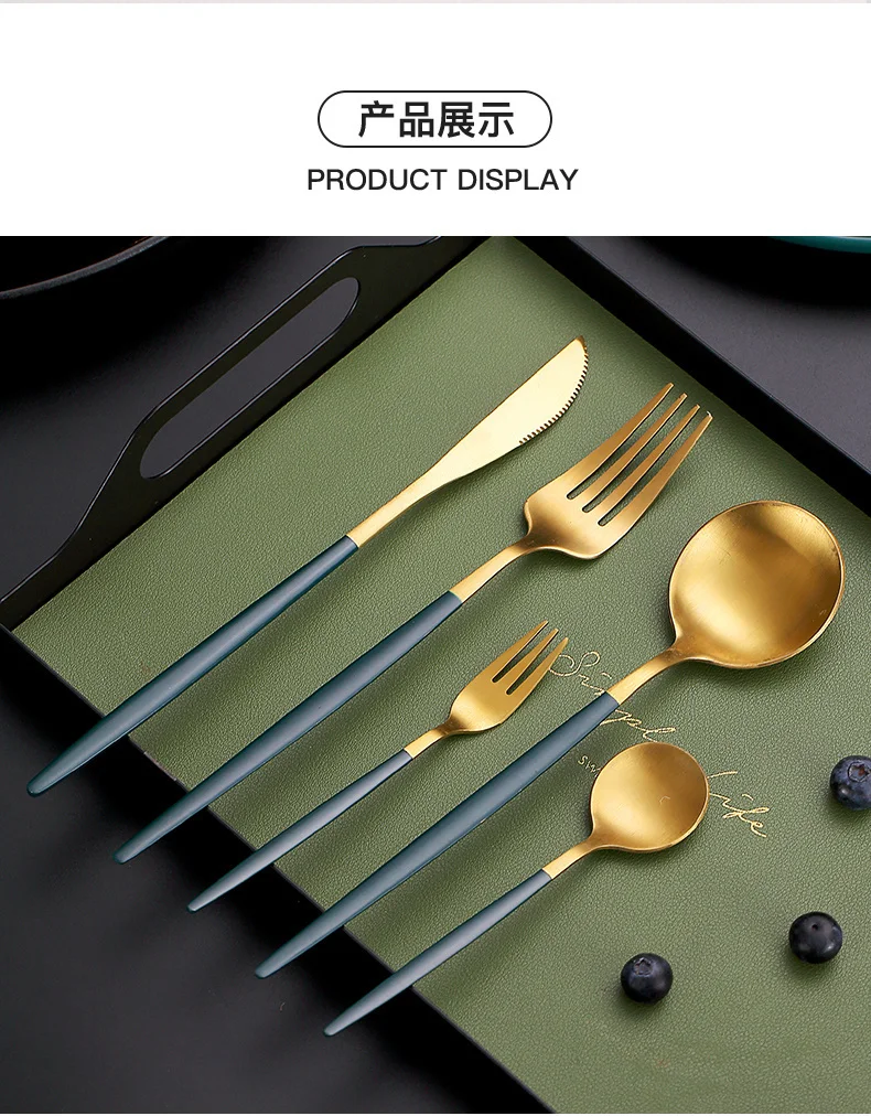 Worthby 4/16/24 набор столовых приборов золотистого Нержавеющая сталь столовые приборы Ножи вилка, ложка, посуда набор Кухня столовая посуда набор посуды