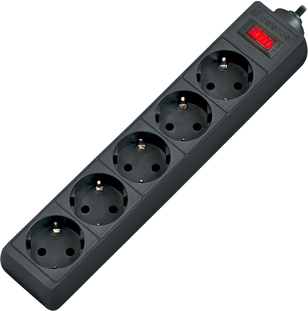 Сетевой фильтр-удлинитель Defender 5 розеток с заземлением , 1.8/3/5 метра , белый/черный