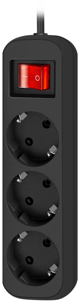 Описание: Удлинитель сетевой Defender 3 розетки с заземлением , 1.8/3 метра выключатель , черный